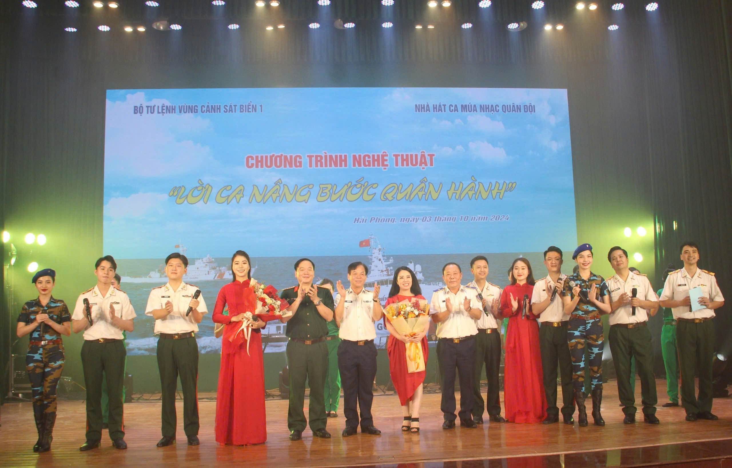 - Tối ngày 3/10, Đoàn ca múa nhạc nhẹ, Nhà hát Ca múa nhạc Quân đội do đồng chí Đại tá NSND Nguyễn Thị Bích Hạnh (Hồng Hạnh), Phó Bí thư Đảng ủy, Giám đốc làm trưởng đoàn, cùng với 50 nghệ sĩ, diễn viên của Nhà hát đã tổ chức biểu diễn nghệ thuật phục vụ gần 500 cán bộ, chiến sĩ Vùng Cảnh sát biển 1 và Nhân dân trên địa bàn quận Hải An, TP.Hải Phòng.