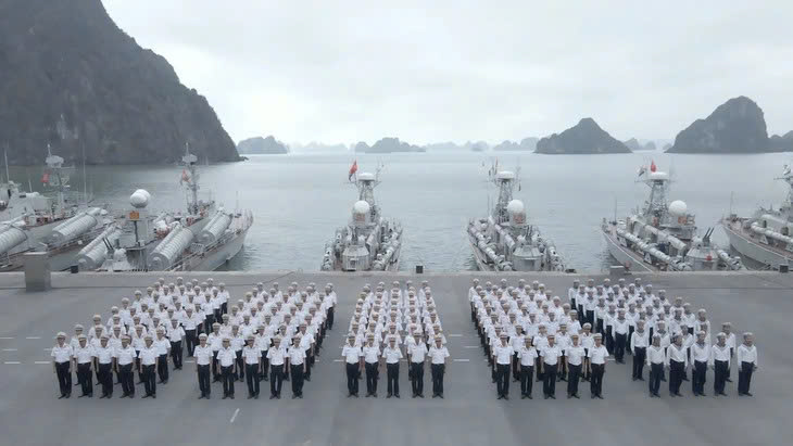 Đặc biệt, lần đầu tiên ca khúc “Ta tự hào đi lên, ôi Việt Nam” được thể hiện bởi hơn 200 chiến sĩ hải quân trên những tàu chiến hiện đại, cho thấy sức mạnh ấn tượng của Hải quân Nhân dân Việt Nam.