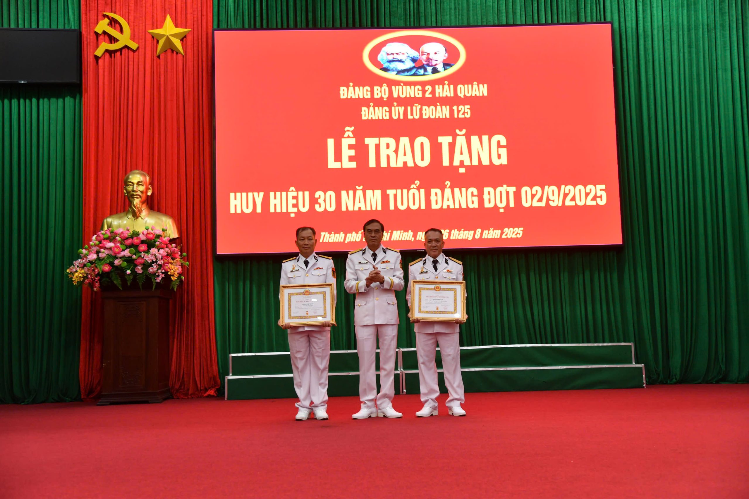 Nhân dịp Kỷ niệm 80 năm Ngày Cách mạng Tháng Tám thành công và Quốc khánh nước Cộng hòa xã hội chủ nghĩa Việt Nam 2/9, Đảng ủy Lữ đoàn 125 đã long trọng tổ chức Lễ trao tặng Huy hiệu 30 năm tuổi Đảng cho đồng chí Thượng tá Phan Anh Tuấn, Phó Lữ đoàn trưởng và đồng chí Thiếu tá QNCN Đào Văn Đoàn, Nhân viên Doanh trại, Phòng Hậu cần – Kỹ thuật.