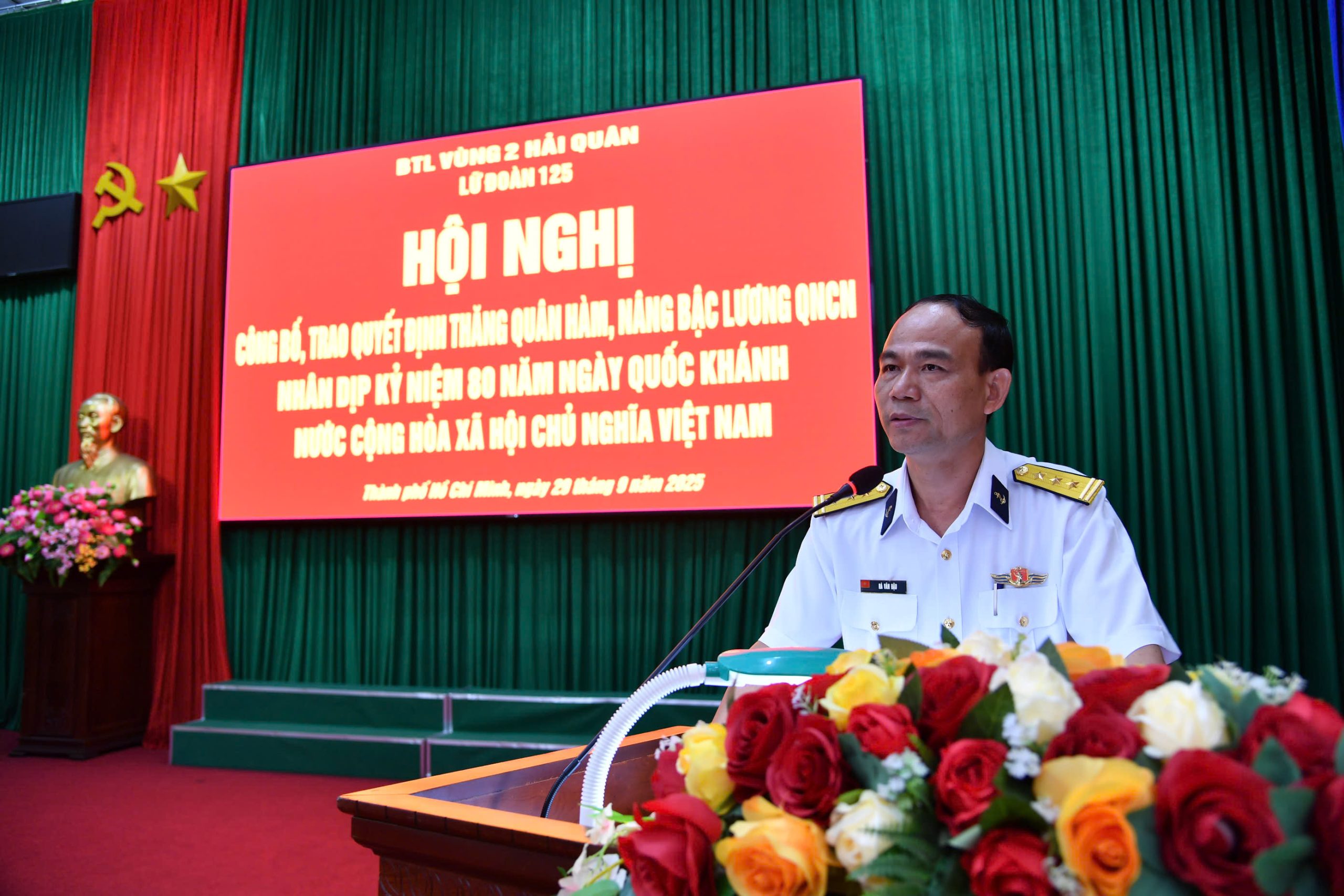 Phát biểu chúc mừng và giao nhiệm vụ, Thượng tá Hà Văn Hậu nhấn mạnh: Việc được thăng quân hàm, nâng bậc lương là niềm vinh dự, tự hào của cá nhân, gia đình và đơn vị; đồng thời thể hiện sự tin tưởng, ghi nhận của cấp trên đối với quá trình rèn luyện, cống hiến của các đồng chí QNCN. Đồng chí yêu cầu mỗi đồng chí QNCN tiếp tục phát huy kết quả đạt được, giữ vững phẩm chất “Bộ đội Cụ Hồ – Người chiến sĩ Hải quân”, không ngừng tu dưỡng đạo đức, rèn luyện bản lĩnh chính trị, nâng cao trình độ chuyên môn, gương mẫu trong kỷ luật, hoàn thành tốt mọi nhiệm vụ được giao.