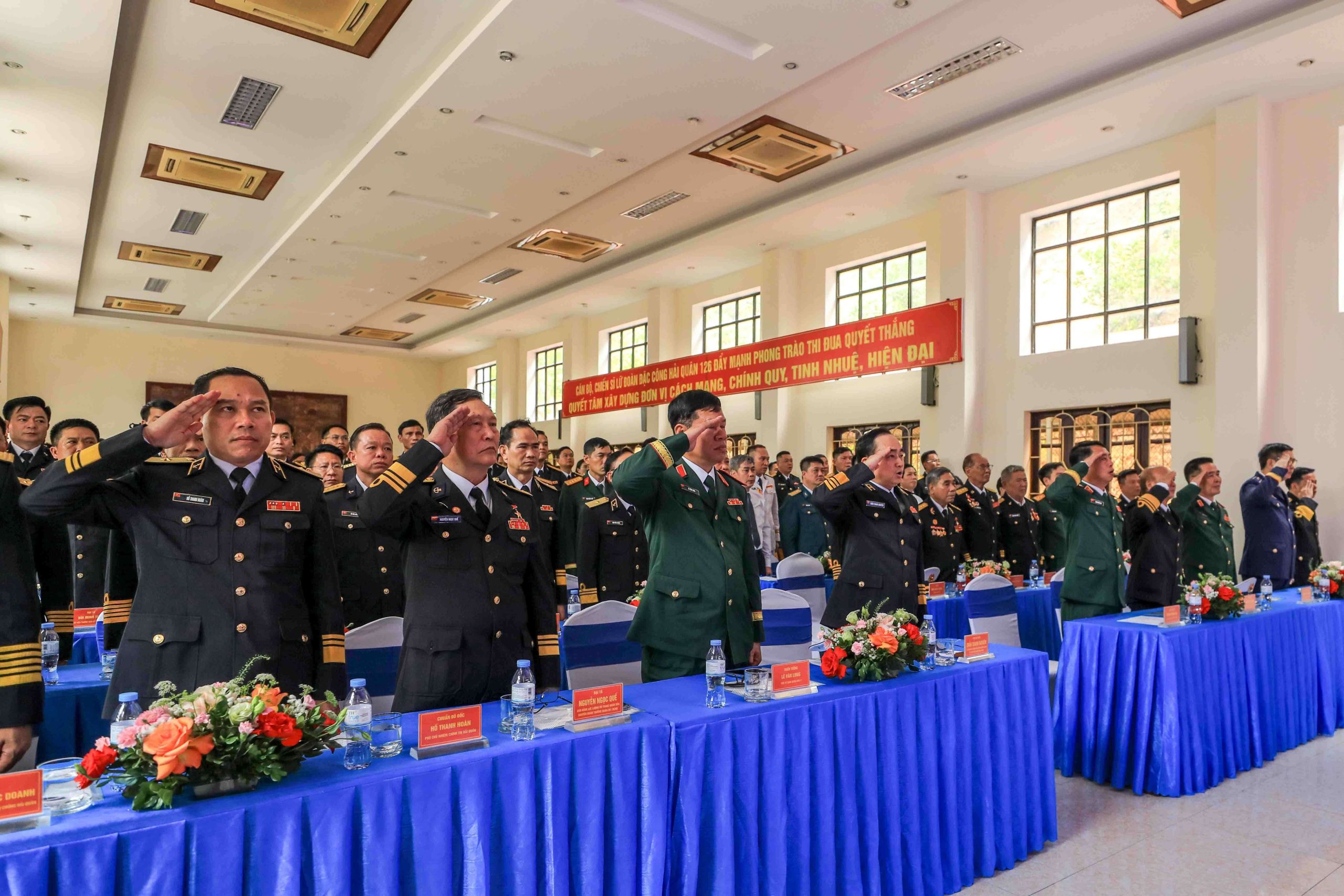 Đại biểu làm lễ chào cờ tại hội trường Lữ đoàn Đặc công Hải quân 126.