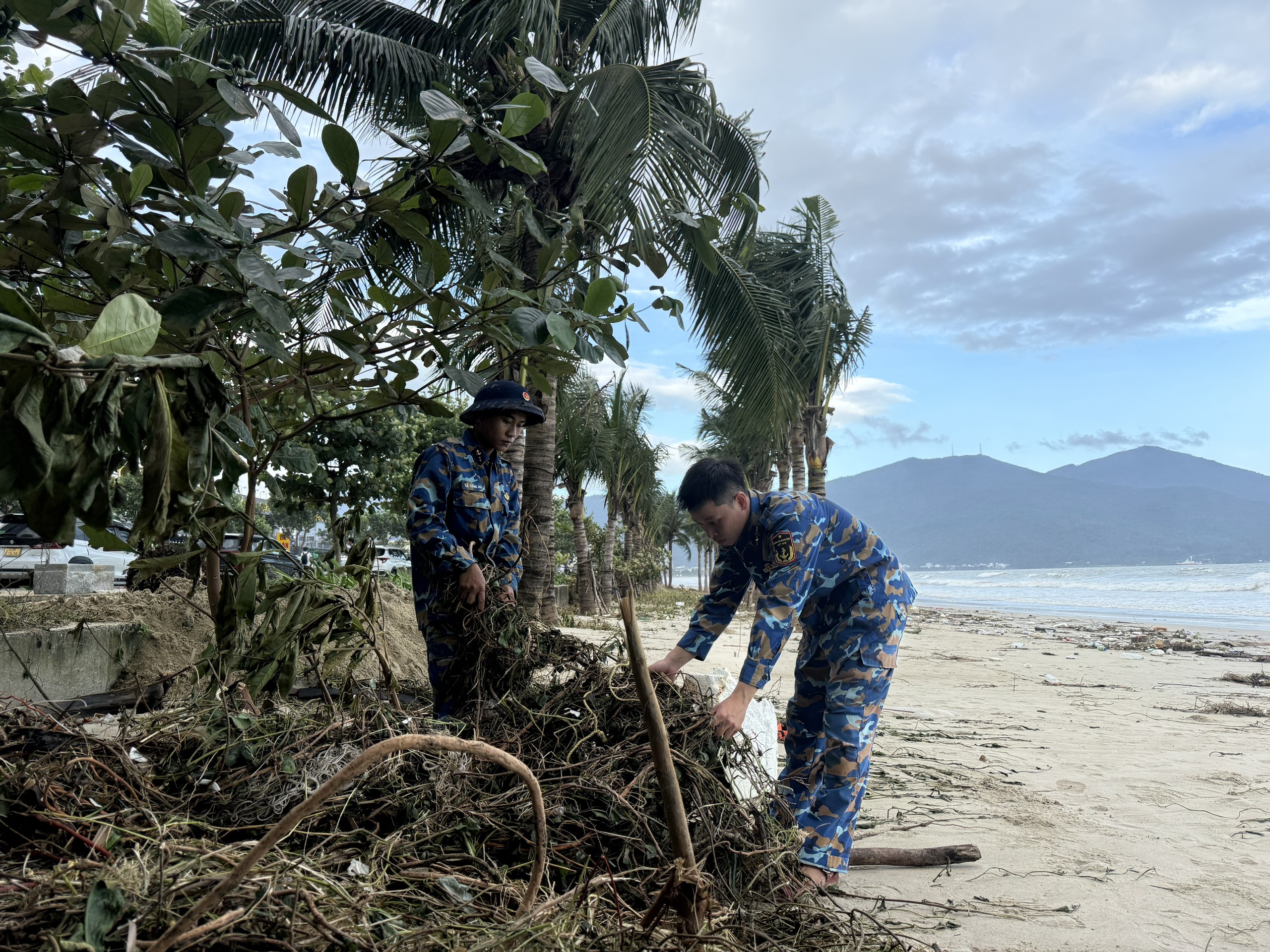 Ngay sau khi bão số 13 đi qua, nhiều tuyến đường ven biển khối lượng lớn cát, đất đá tràn ra mặt đường gây ảnh hưởng đến giao thông và cảnh quan môi trường trên địa bàn thành phố Đà Nẵng. Lữ đoàn đã nhanh chóng huy động hơn 40 cán bộ, chiến sĩ cùng phương tiện và các dụng cụ cần thiết giúp địa phương khắc phục hậu quả thiên tai, khẩn trương tham gia thu dọn, san gạt, làm sạch tuyến đường Hoàng Sa và dọc mép bờ biển thuộc phường Sơn Trà, thành phố Đà Nẵng.