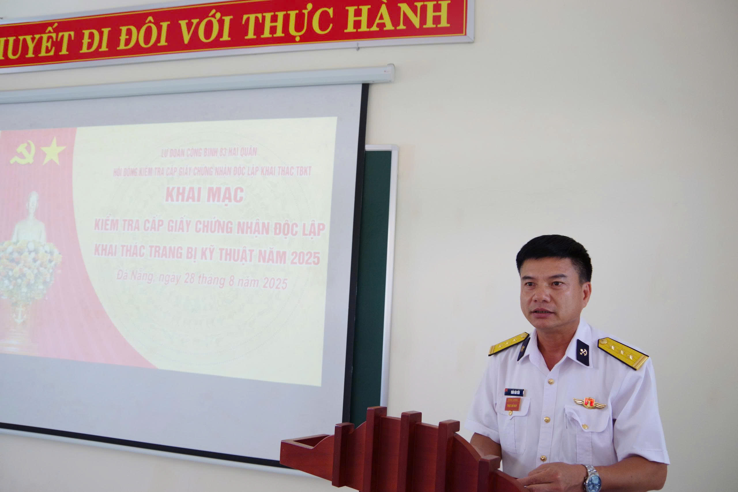 Tạp chí Biển Việt Nam - Chiều ngày 28/8, tại Đà Nẵng. Lữ đoàn Công binh 83 Hải quân tổ chức khai mạc kiểm tra và cấp giấy chứng nhận độc lập khai thác trang bị kỹ thuật năm 2025. Thượng tá Trần Văn Tiến, Phó Lữ đoàn trưởng dự, chỉ đạo.