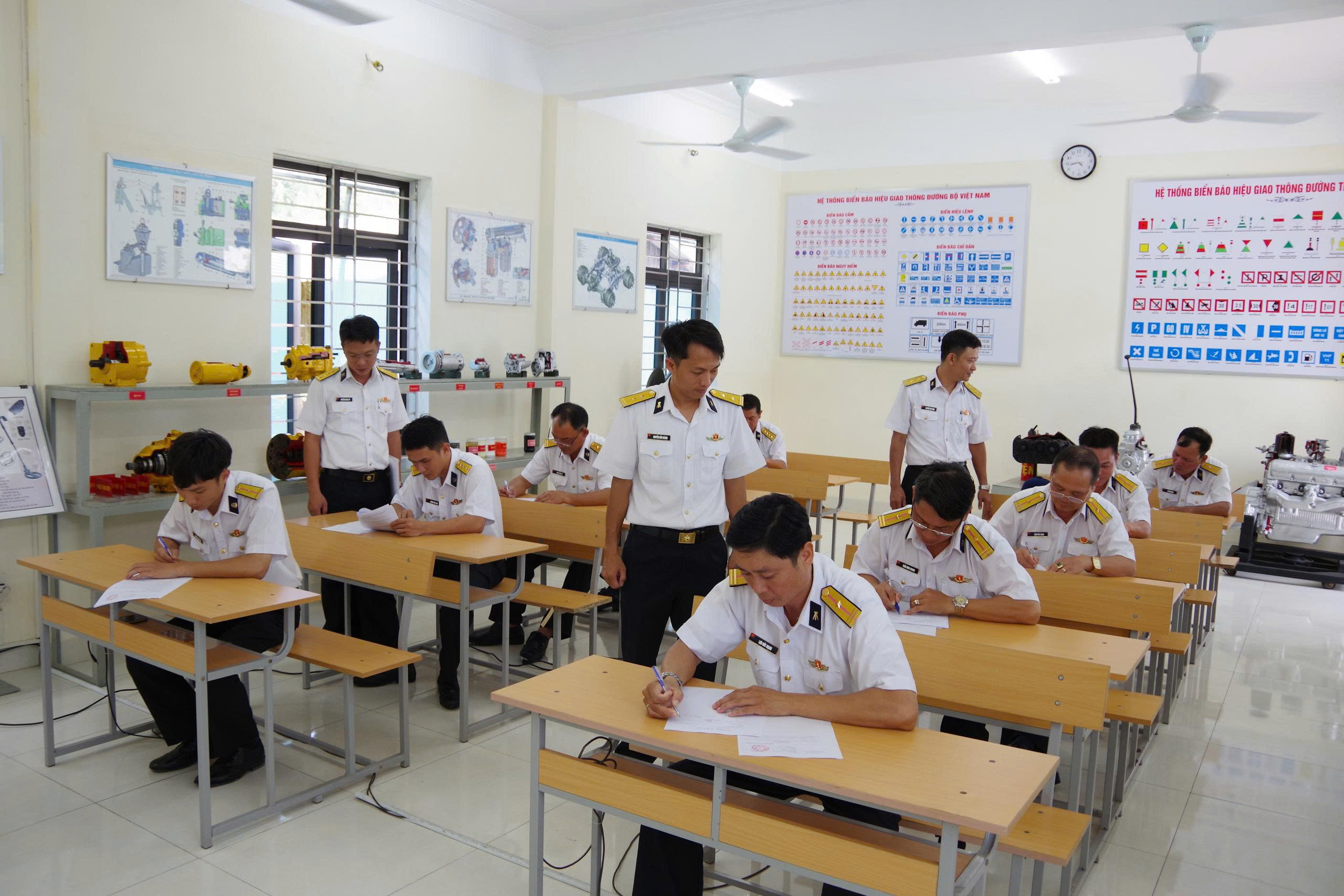 Các thí sinh thực hiện nội dung kiểm tra lý thuyết.