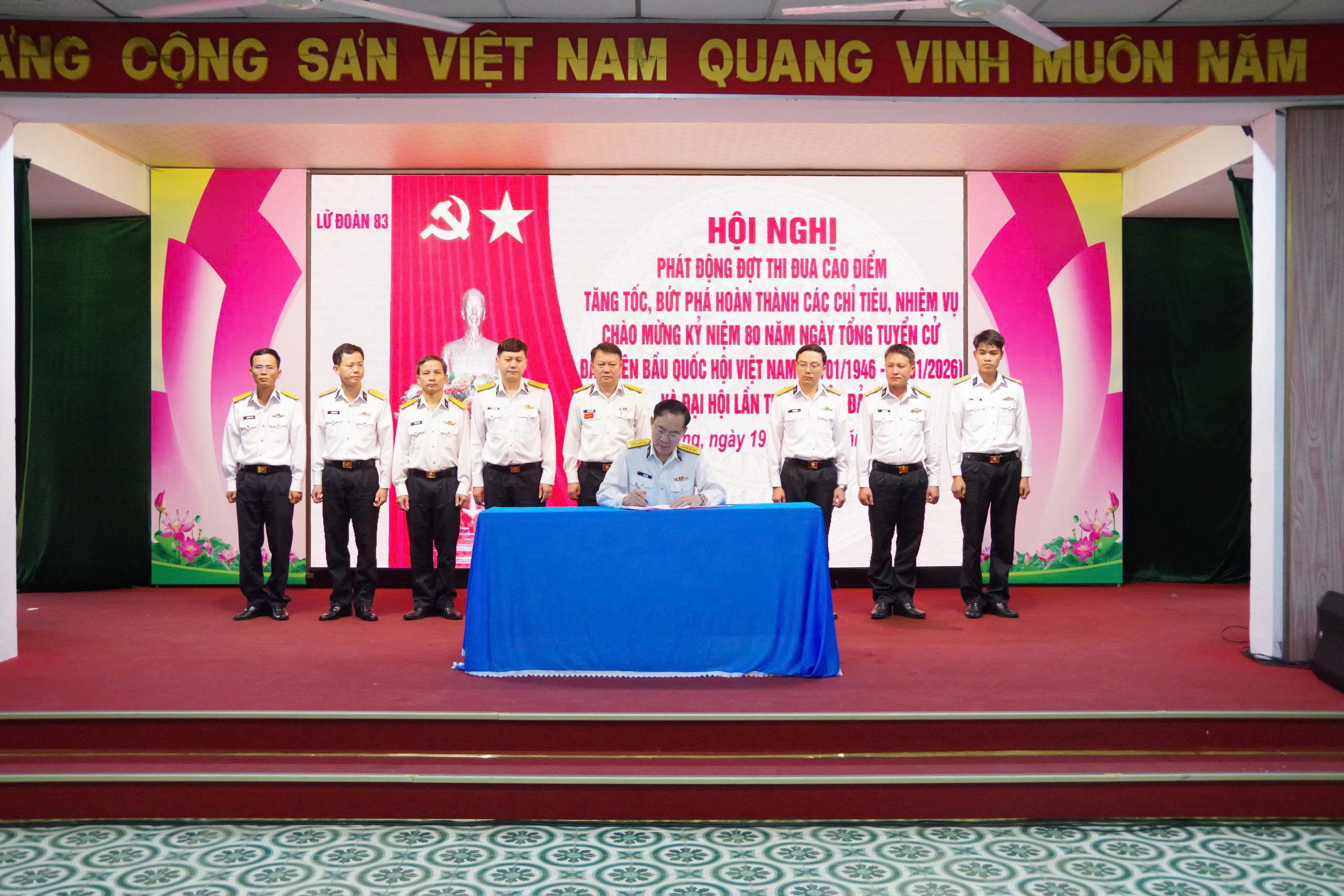 Lữ đoàn 83 phát động thi đua cao điểm chào mừng Đại hội lần thứ XIV của Đảng và trao thưởng cho các tập thể, cá nhân có thành tích tốt trong công tác ứng cứu, giúp nhân dân khắc phục hậu quả mưa lũ