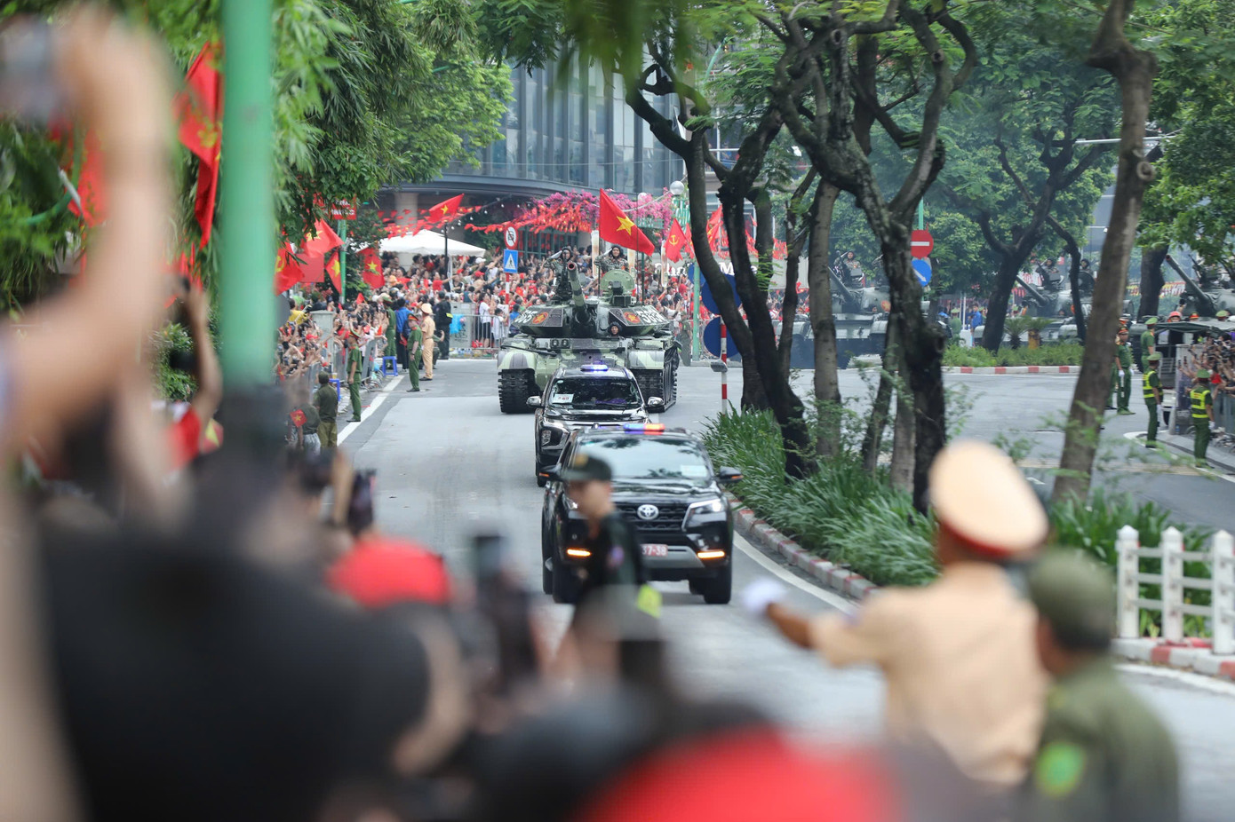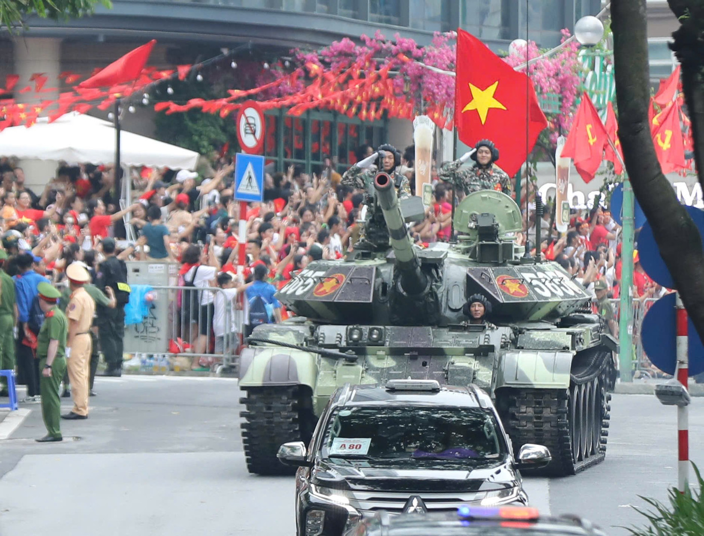 - Đoàn xe khí tài quân sự và các chiến sĩ đã di chuyển về Quảng trường Ba Đình để tham gia sơ duyệt lễ kỷ niệm 80 năm Cách mạng tháng Tám và Quốc khánh 2/9 trong sự reo hò phấn khích của "biển người" hai bên đường. Các khối xe bao gồm xe tăng, xe thiết giáp, xe pháo quân sự và các loại xe đặc chủng, di chuyển từ trường đua F1 Mỹ Đình qua nhiều tuyến phố.