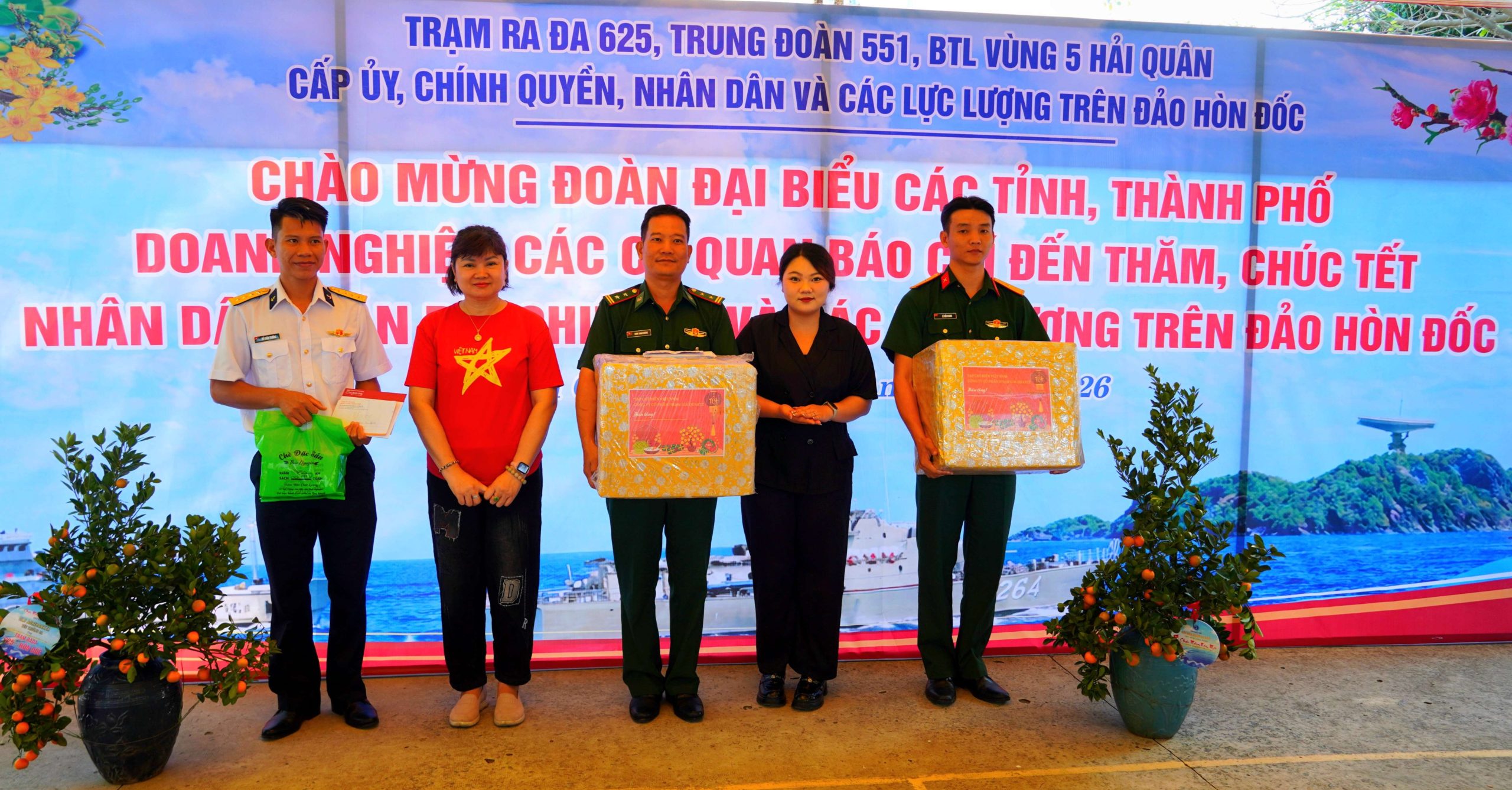 Ngay từ buổi gặp mặt đầu tiên ở Bộ Tư lệnh Vùng 5 Hải quân, không khí thân tình, ấm áp lan tỏa khi đồng chí Hoàng Thị Huệ – Tổng Biên tập Tạp chí Biển Việt Nam thay mặt đoàn công tác trao những phần quà Tết đến cán bộ, chiến sĩ đang thực hiện nhiệm vụ. Những món quà tuy không lớn về giá trị vật chất nhưng chứa đựng tình cảm chân thành, là sự động viên kịp thời để các anh thêm vững vàng nơi đầu sóng ngọn gió.