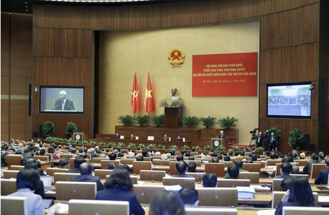Đặc biệt, Hội nghị Văn hóa toàn quốc nhằm triển khai Nghị quyết Đại hội XIII của Đảng, tổ chức ngày 24-11-2021, đã trở thành một dấu mốc quan trọng. Đây là hội nghị văn hóa toàn quốc đầu tiên được tổ chức sau 75 năm kể từ ngày Chủ tịch Hồ Chí Minh chủ trì Hội nghị Văn hóa toàn quốc lần thứ nhất năm 1946. Sự kiện này đã tạo sức lan tỏa mạnh mẽ, nâng cao nhận thức trong toàn hệ thống chính trị và các tầng lớp nhân dân về vị trí, vai trò của văn hóa đối với sự phát triển đất nước. Trên tinh thần đó, Đảng ta tiếp tục khẳng định quan điểm: phải đặt văn hóa ngang hàng với kinh tế, chính trị và xã hội trong tiến trình phát triển quốc gia.