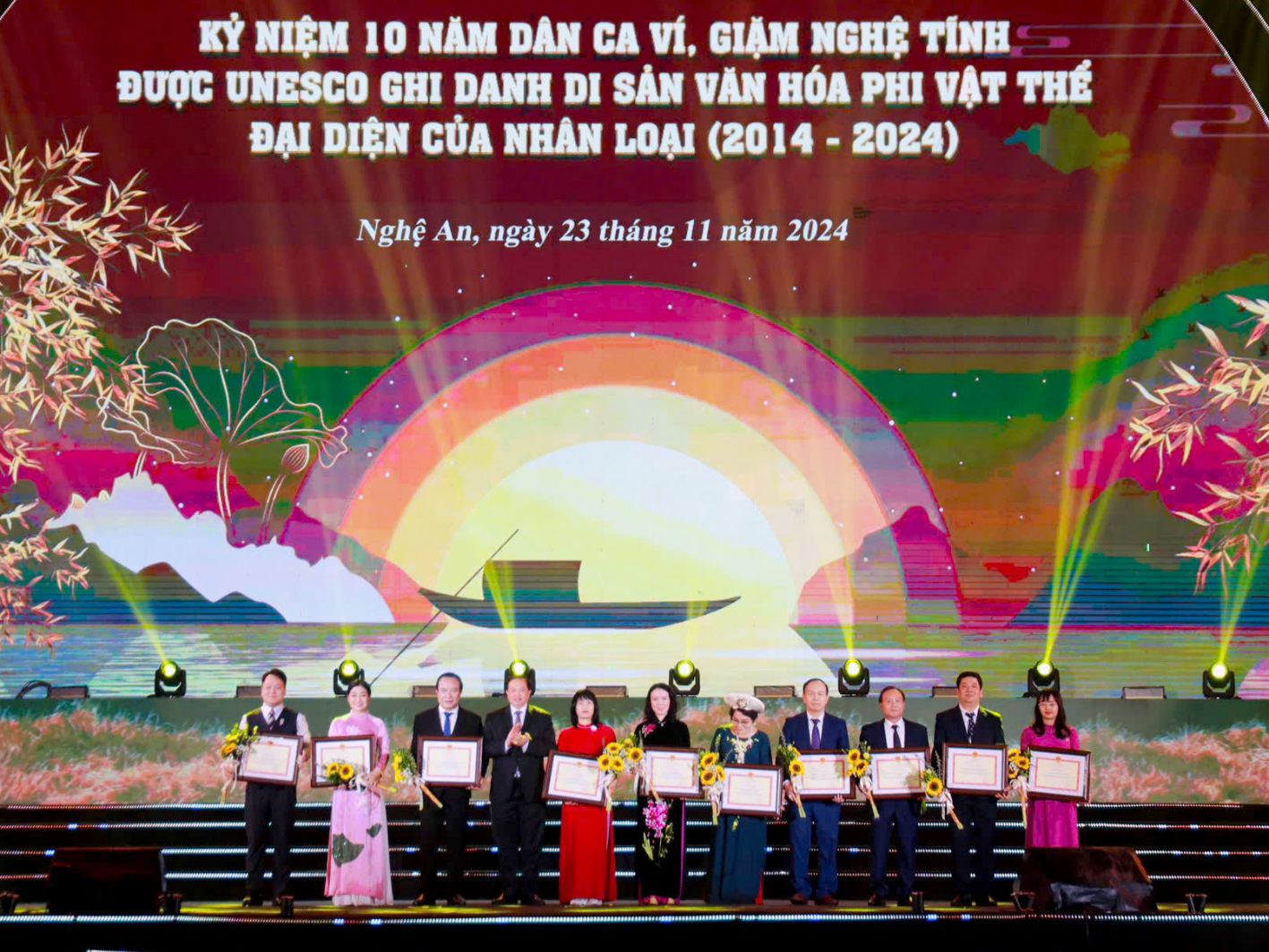 - Tối 23/11, tỉnh Nghệ An đã long trọng tổ chức Lễ kỷ niệm 10 năm Dân ca Ví, Giặm Nghệ Tĩnh được UNESCO ghi danh di sản văn hóa phi vật thể đại diện của nhân loại (2014 -2024).