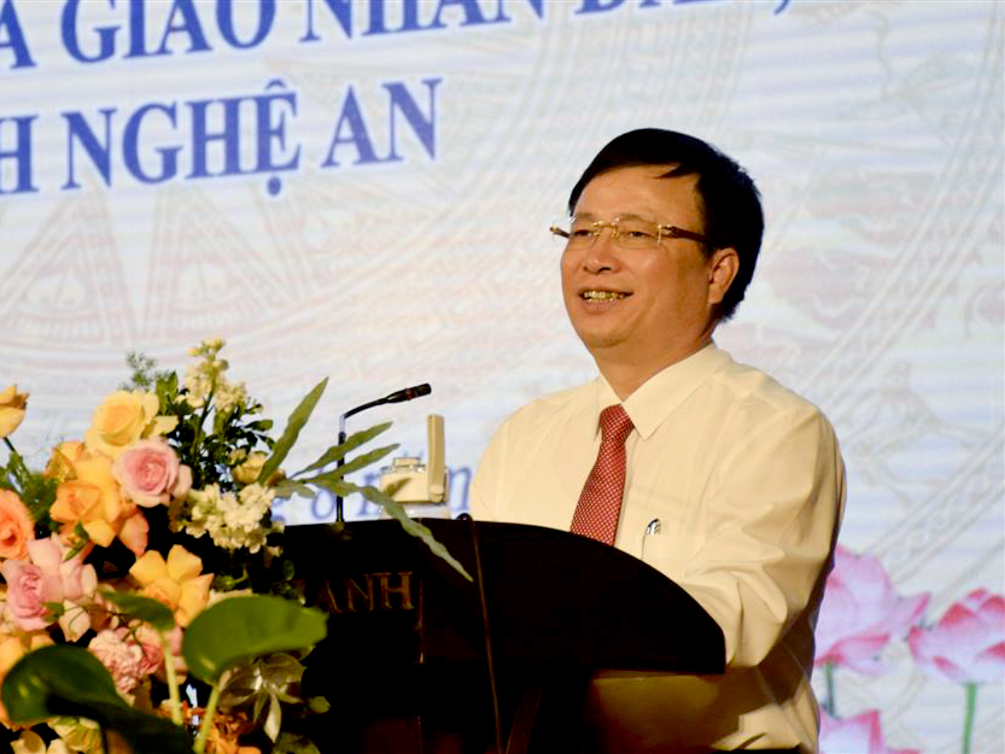 Thay mặt lãnh đạo tỉnh, Phó Chủ tịch UBND tỉnh Bùi Đình Long chúc mừng, ghi nhận và đánh giá cao những thành tích của ngành giáo dục, gửi lời tri ân sâu sắc tới tất cả các thầy cô giáo – những người đang miệt mài cống hiến cho sự nghiệp “trồng người”, vì tương lai của thế hệ trẻ và sự phát triển của quê hương Nghệ An, nhất là đối với quý thầy cô đã vinh dự được phong tặng danh hiệu Nhà giáo Nhân dân, Nhà giáo Ưu tú qua các thời kỳ. Đặc biệt, gửi lời chúc mừng tới 64 nhà giáo đã và đang công tác trên địa bàn tỉnh vinh dự được Chủ tịch nước phong tặng Danh hiệu Nhà giáo Ưu tú lần thứ 16.