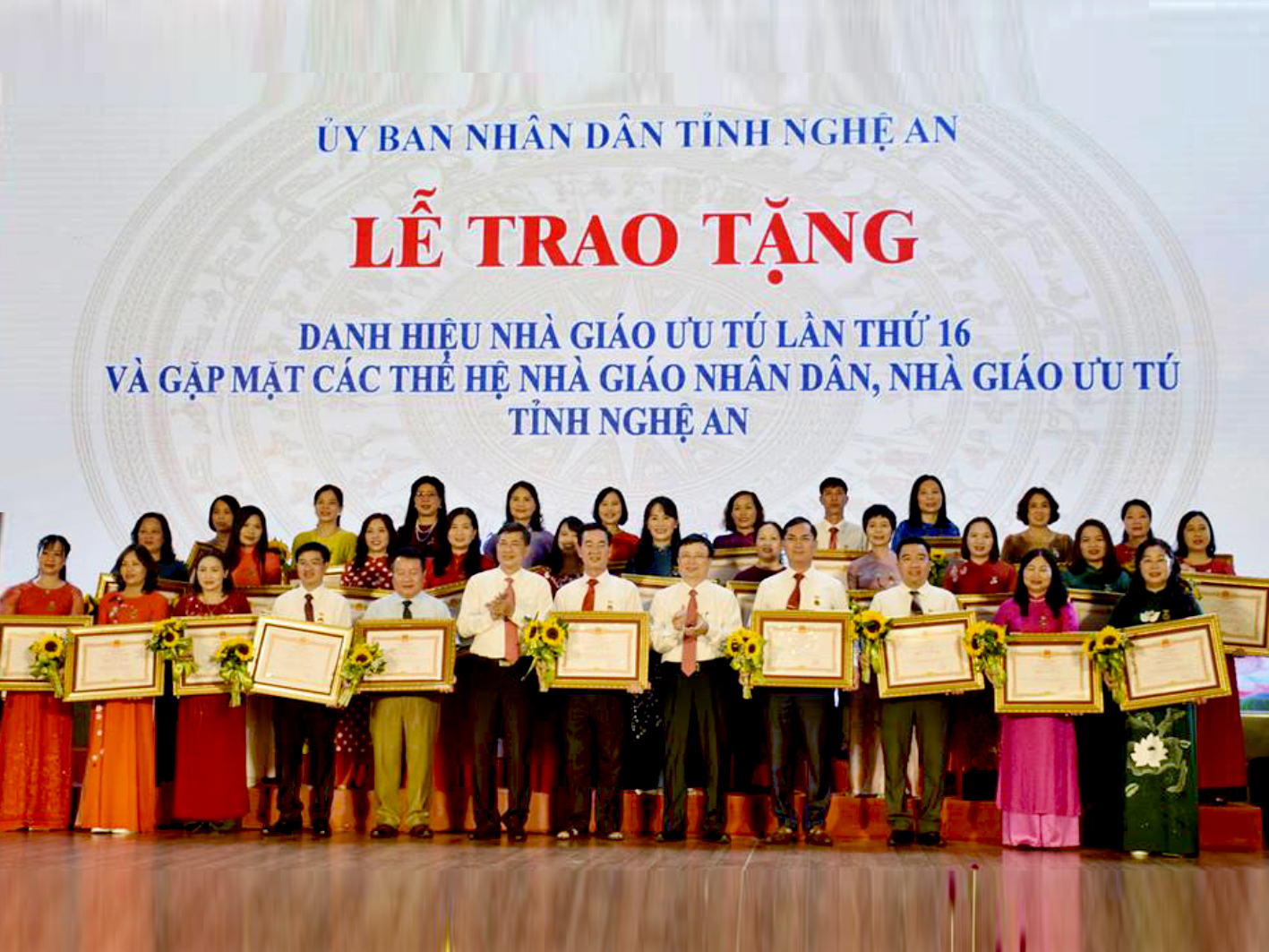 - Trước thềm năm học mới, thừa uỷ quyền của Chủ tịch nước Cộng hòa XHCN Việt Nam, UBND tỉnh Nghệ An đã long trọng tổ chức Lễ trao tặng Danh hiệu Nhà giáo Ưu tú lần thứ 16 và gặp mặt các thế hệ Nhà giáo Nhân dân, Nhà giáo Ưu tú trên địa bàn tỉnh.