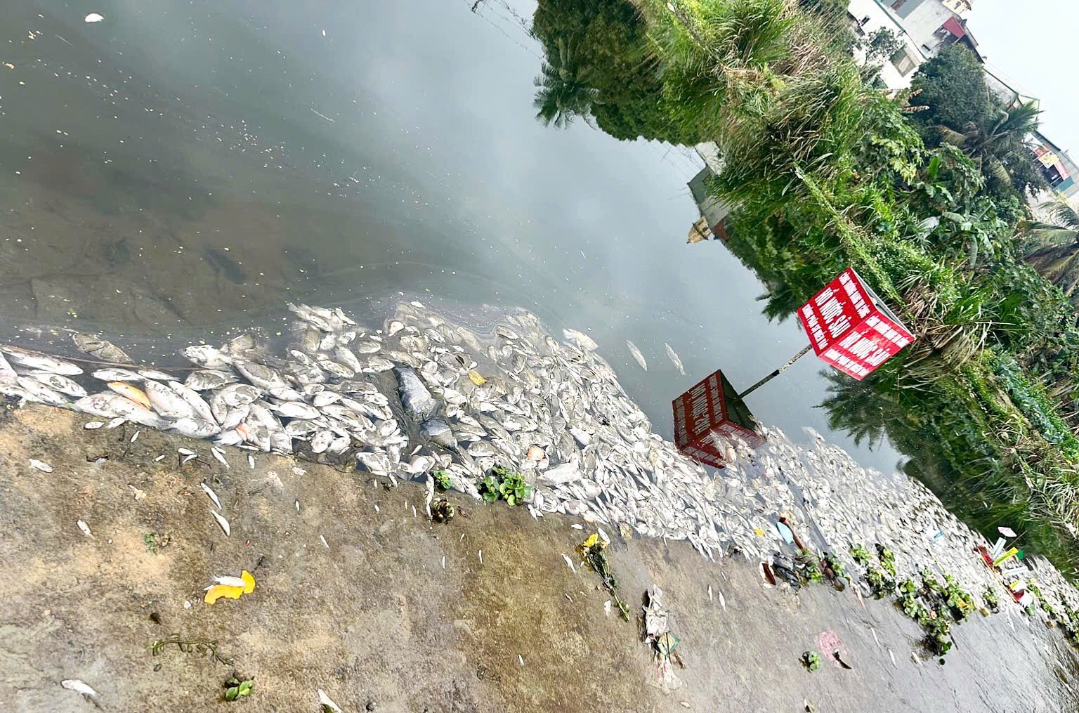 Cá chết nổi trên mặt nước đã bốc mùi hôi thối tại suối Cổ Đam (thị xã Bỉm Sơn, Thanh Hoá)