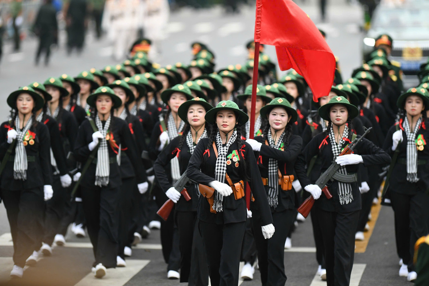 Đối với những nữ chiến sĩ, việc tham gia đội hình diễu binh không chỉ là vinh dự mà còn là trách nhiệm lớn lao. Họ phải trải qua thời gian huấn luyện nghiêm ngặt, vượt qua nhiều thử thách về thể lực, kỹ thuật và tinh thần. Để có được dáng đi oai phong, khí chất rắn rỏi trong ngày trọng đại, họ đã không ngừng nỗ lực từng ngày, vượt qua cả sự mệt mỏi để giữ bước chân chắc khỏe, hàng ngũ ngay ngắn.