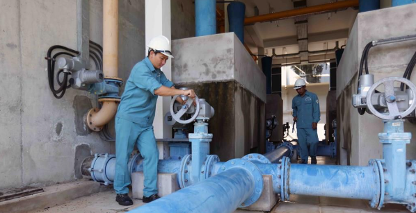 Nhà máy nước vận hành cung cấp nước sạch phục vụ nhân dân.