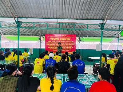 Tại các buổi tuyên truyền, cán bộ Đồn Công an KCN Minh Hưng, tỉnh Đồng Nai đã phổ biến các quy định pháp luật liên quan đến công tác bảo đảm an ninh, trật tự trên địa bàn, tập trung vào những nội dung mới có hiệu lực, trong đó có Nghị định số 282/2025/NĐ-CP ngày 30/10/2025 của Chính phủ về xử phạt vi phạm hành chính trong lĩnh vực an ninh, trật tự, an toàn xã hội; phòng, chống tệ nạn xã hội và bạo lực gia đình. Đồng thời, thông tin về tình hình, phương thức, thủ đoạn hoạt động của các loại tội phạm; hướng dẫn biện pháp phòng ngừa; vận động công nhân tích cực tham gia đấu tranh, tố giác tội phạm, nhất là các hành vi trộm cắp, cướp giật tài sản, cố ý gây thương tích, tội phạm công nghệ cao, tội phạm liên quan đến “tín dụng đen” và các tệ nạn xã hội như ma túy, cờ bạc, mại dâm. Bên cạnh đó, lực lượng Công an cũng đôn đốc, nhắc nhở doanh nghiệp và người lao động tăng cường các biện pháp bảo đảm an toàn phòng cháy, chữa cháy, an toàn lao động, an toàn vệ sinh thực phẩm; chấp hành nghiêm các quy định của pháp luật về quản lý, sử dụng vũ khí, vật liệu nổ, công cụ hỗ trợ và pháo, cũng như bảo đảm trật tự, an toàn giao thông khi tham gia giao thông.