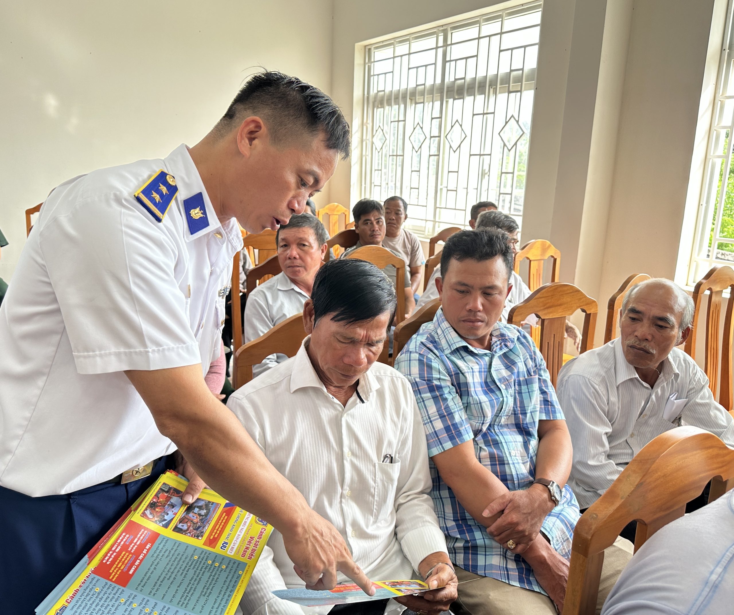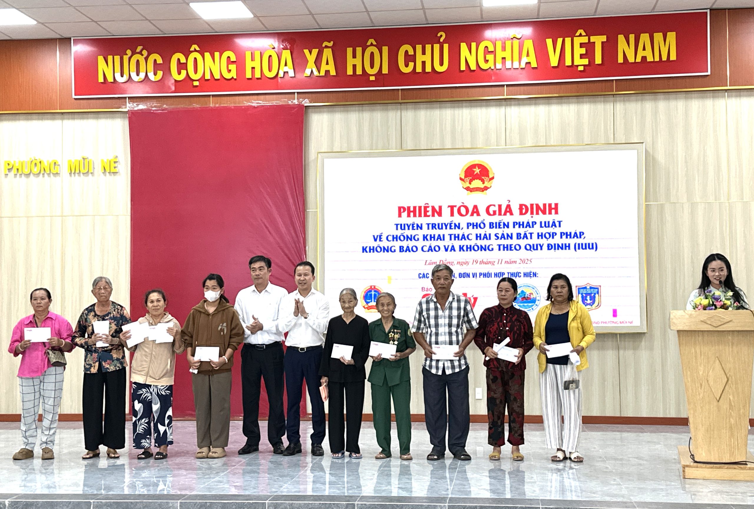 Trong chương trình, lực lượng chức năng tuyên truyền, giải đáp nhiều thắc mắc của ngư dân về sử dụng thiết bị giám sát hành trình, ngư trường khai thác hợp pháp và các chế tài xử lý vi phạm IUU. Ban tổ chức trao tặng 40 suất quà gồm cờ Tổ quốc, áo phao và nhu yếu phẩm cho các gia đình chính sách và ngư dân phường Mũi Né, động viên bà con yên tâm vươn khơi, góp phần bảo vệ chủ quyền biển, đảo của Tổ quốc.