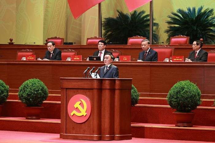 Đồng chí Trần Thanh Mẫn, Ủy viên Bộ Chính trị, Chủ tịch Quốc hội nước Cộng hòa xã hội chủ nghĩa Việt Nam thay mặt các đồng chí lãnh đạo chủ chốt của Đảng, Nhà nước điều hành phiên họp trù bị.