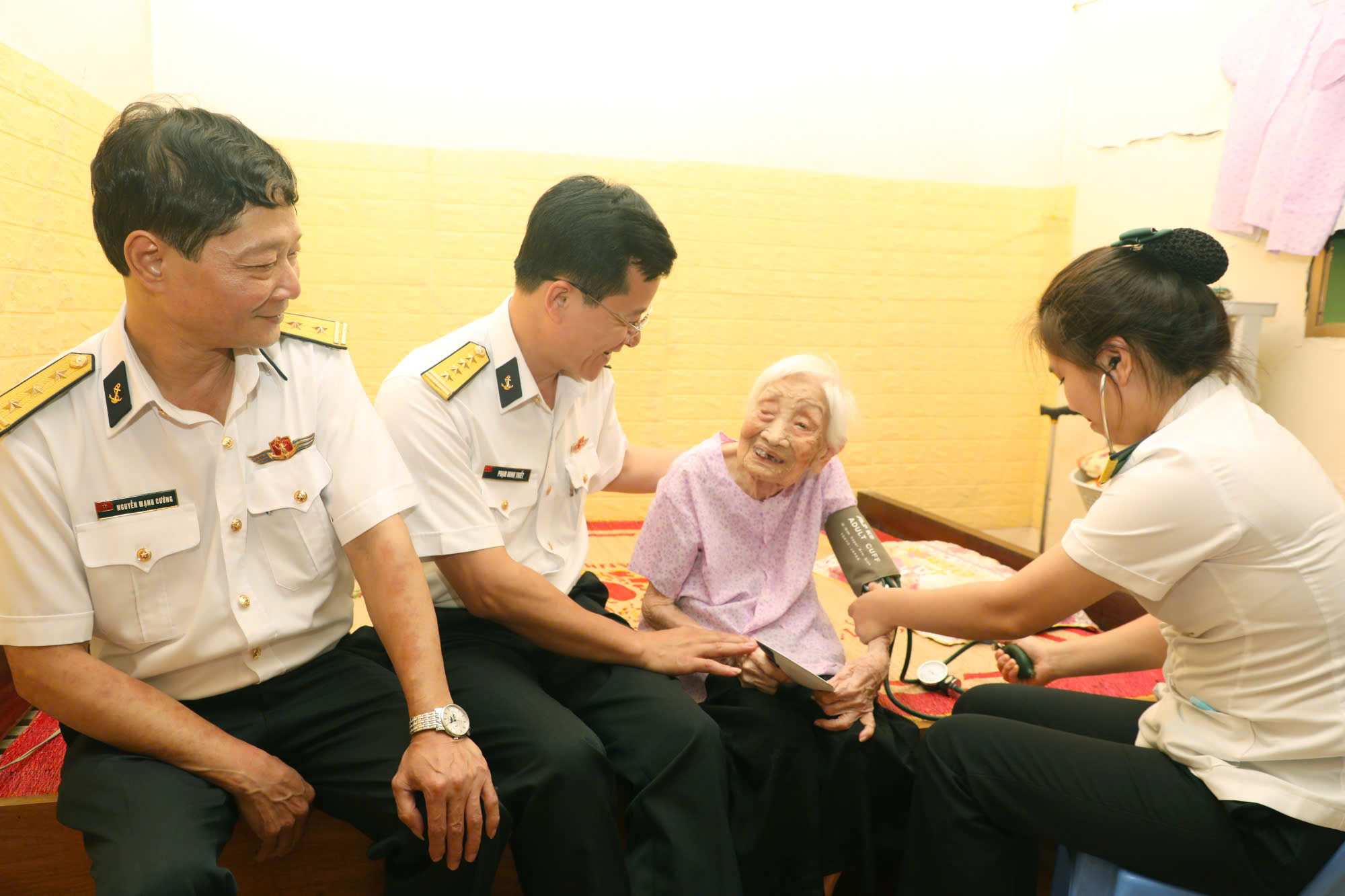 Thường vào những dịp tháng 7 này thì bản thân tôi cũng có được tham gia khám sức khỏe cho người có công và thân nhân những người có công Đặc biệt đối với Cục Hậu cần kỹ thuật thì chúng tôi có chăm sóc một bà mẹ bà tên là Suốt ở An Lão, Hải Phòng. Bà đến bây giờ là trăm tuổi rồi, tuy tuổi rất cao, thế nhưng mà sức khỏe khá là ổn định mắt nhìn rõ tai thính và khám các chỉ số thì khá là ổn định, kể cả nhiệt độ, huyết áp. Tôi khám cho cụ thì cũng được mấy năm gần đây rồi, tôi cũng thường xuyên hằng năm thì được tham gia theo đoàn và khám sức khỏe cho cụ. Cảm thấy rất là phấn khởi, vui và khi được mình được vinh dự trong cái đoàn mình đi thăm khám sức khỏe cho người có công với cách mạng.
