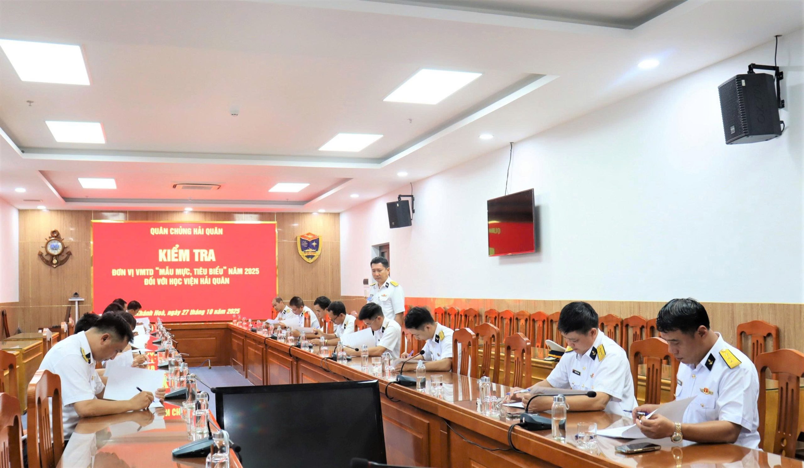 Tạp chí Biển Việt Nam - Ngày 27/10, tại phường Nha Trang, tỉnh Khánh Hòa, đoàn công tác của Quân chủng Hải quân do Chuẩn Đô đốc Nguyễn Văn Bách, Phó Tư lệnh, Tham mưu trưởng Hải quân làm Trưởng đoàn đã tiến hành kiểm tra kết quả xây dựng đơn vị vững mạnh toàn diện “mẫu mực, tiêu biểu” năm 2025 tại Học viện Hải quân. Tham gia đoàn công tác có thủ trưởng Bộ tham mưu, Cục Chính trị, Cục Hậu cần-Kỹ thuật Hải quân và đại diện các cơ quan chức năng Quân chủng.