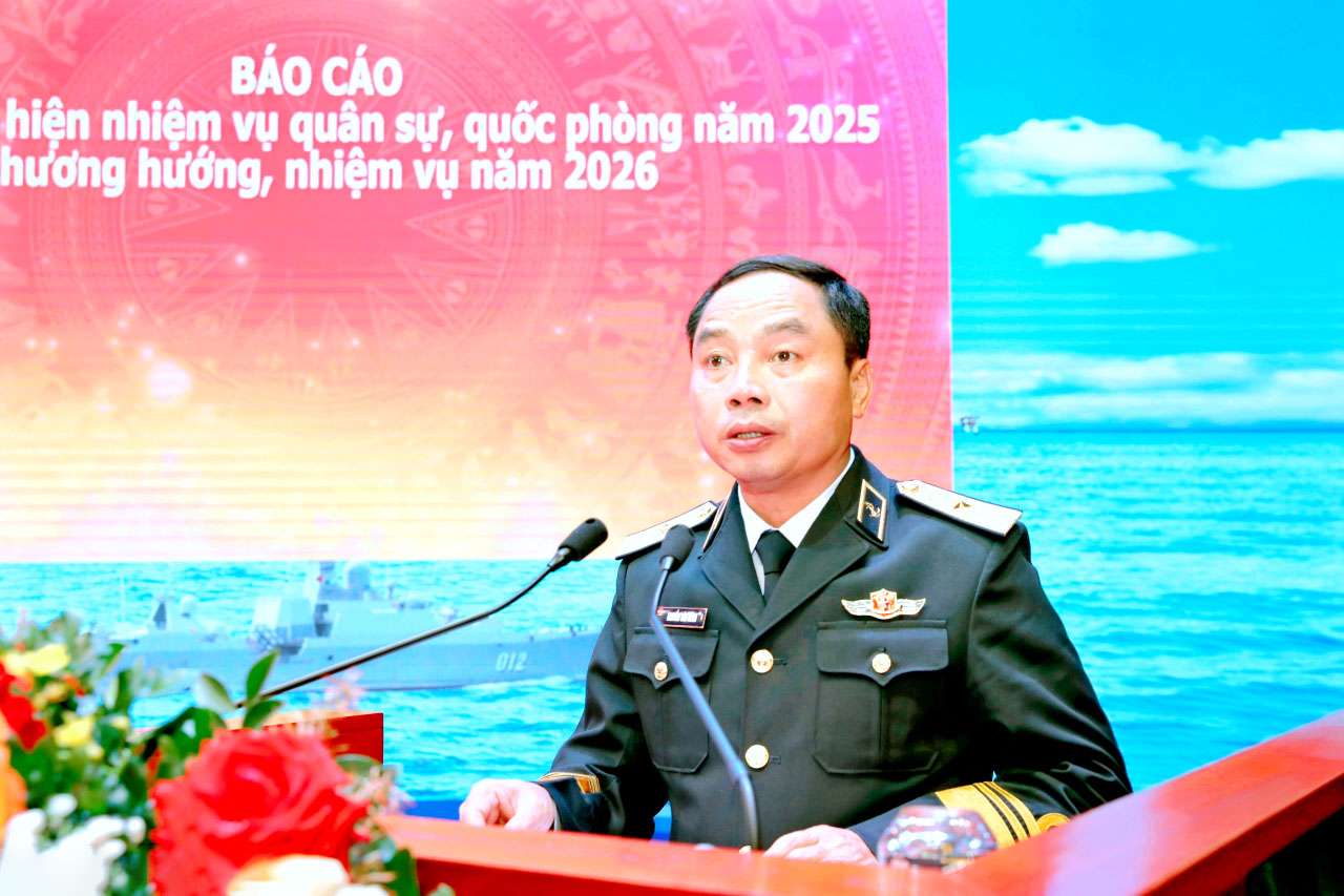 Chuẩn Đô đốc Nguyễn Văn Bách, Phó Tư lệnh, Tham mưu trưởng Quân chủng báo cáo kết quả công tác quân sự, quốc phòng năm 2025; phương hướng, nhiệm vụ năm 2026.