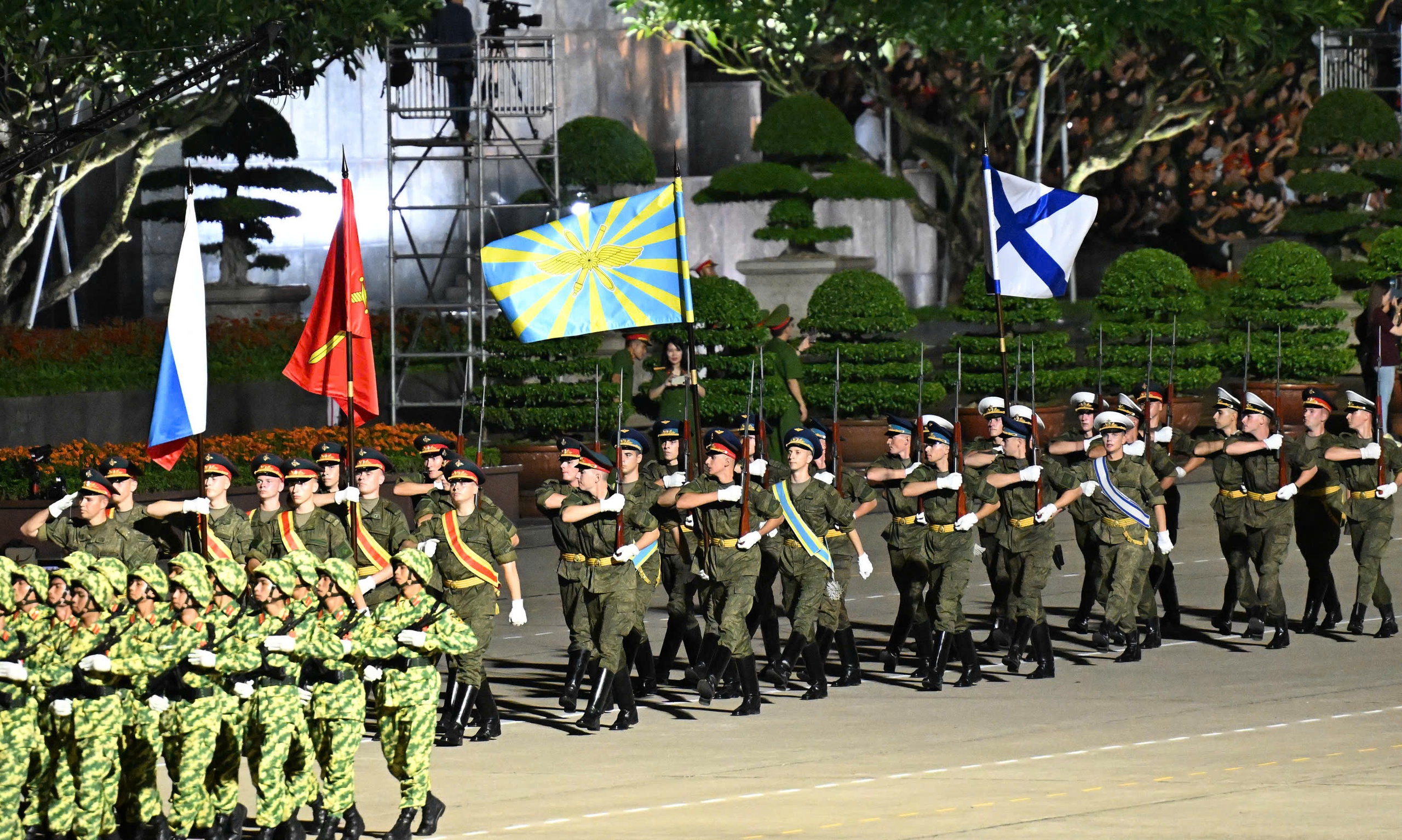 Lần đầu tiên, ba khối quân đội nước ngoài tham gia diễu binh tại Quảng trường Ba Đình, gồm: khối quân nhân Lực lượng vũ trang Liên bang Nga với hơn 30 sĩ quan, chiến sĩ; Quân đội nhân dân Lào và Quân đội Hoàng gia Campuchia, mỗi đoàn 120 quân nhân. Sự hiện diện của những người bạn quốc tế không chỉ góp phần tạo nên diện mạo đa sắc màu cho màn tổng hợp luyện, mà còn thể hiện tinh thần đoàn kết, hữu nghị giữa Việt Nam với các quốc gia bạn bè truyền thống.