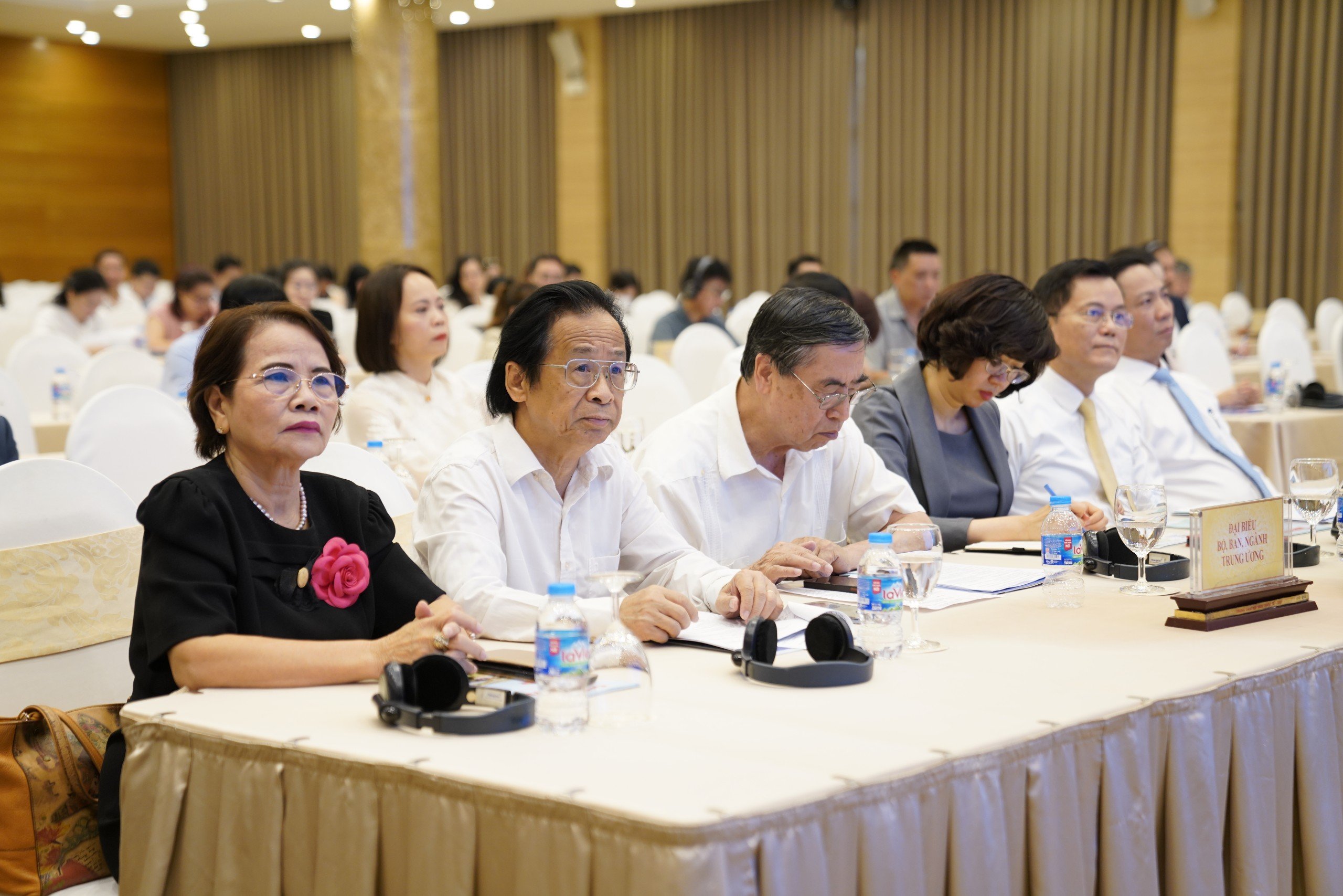 Lãnh đạo, khách mời tham dự buổi họp báo. Ảnh Hoàng Toàn