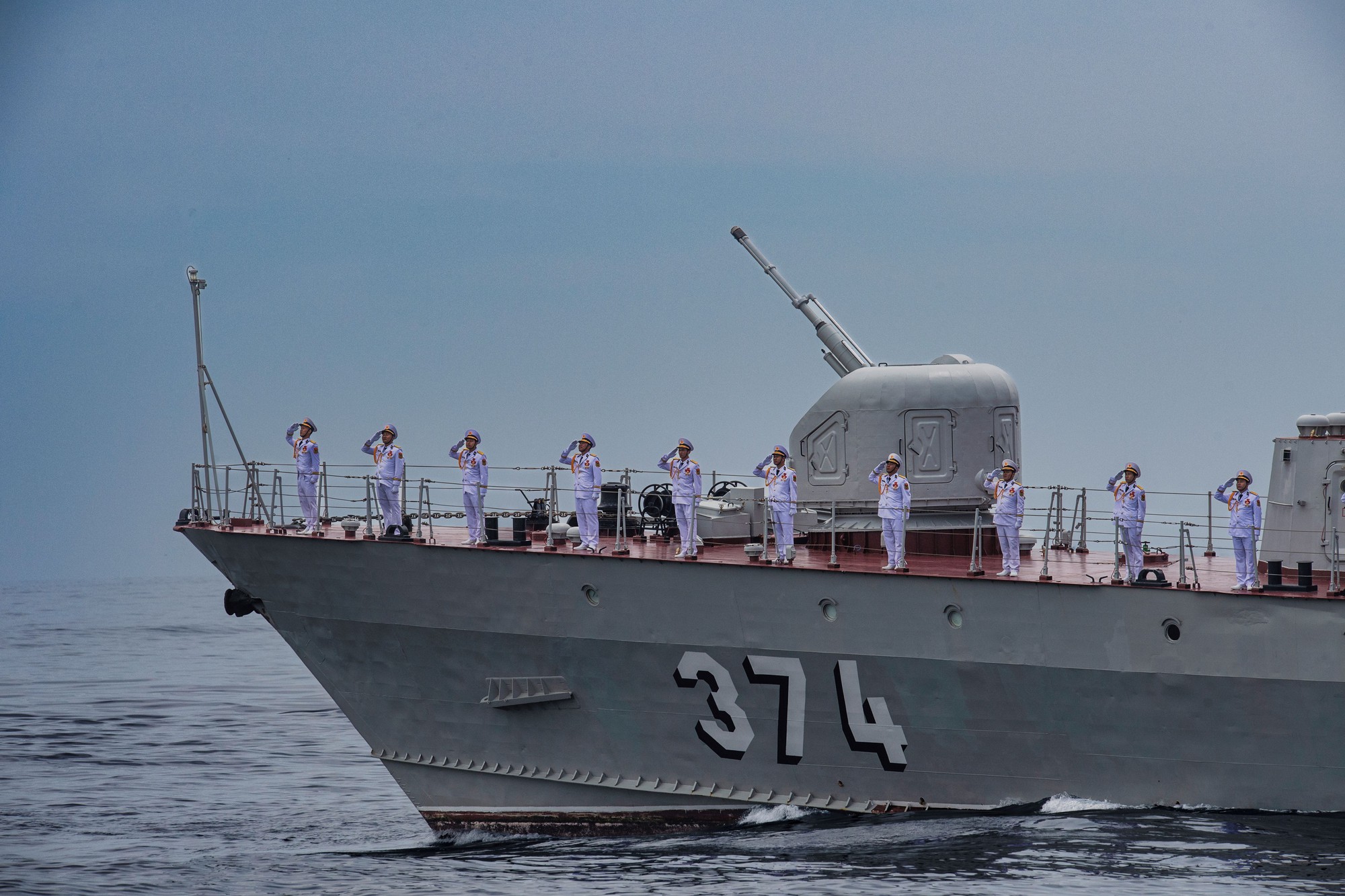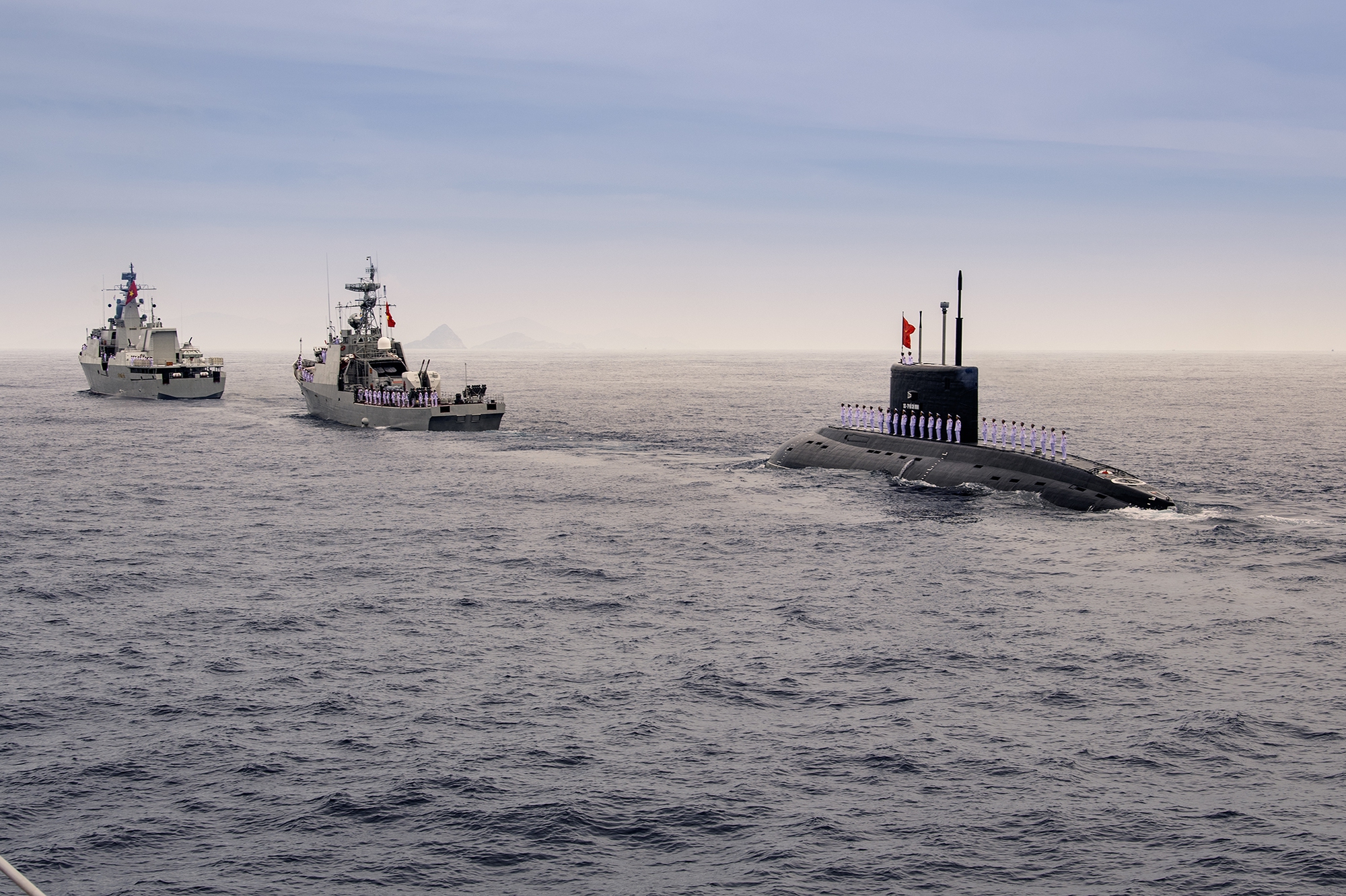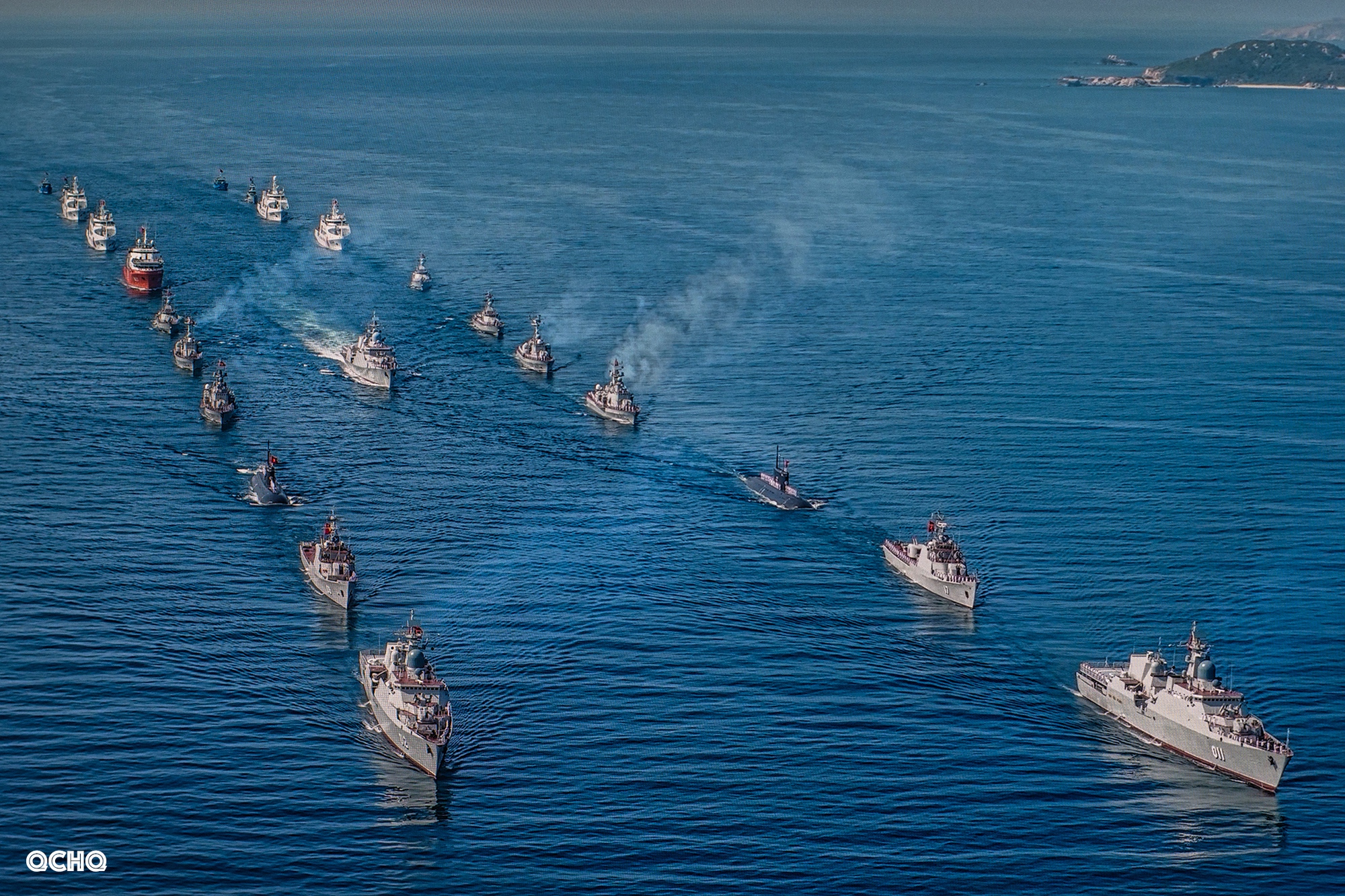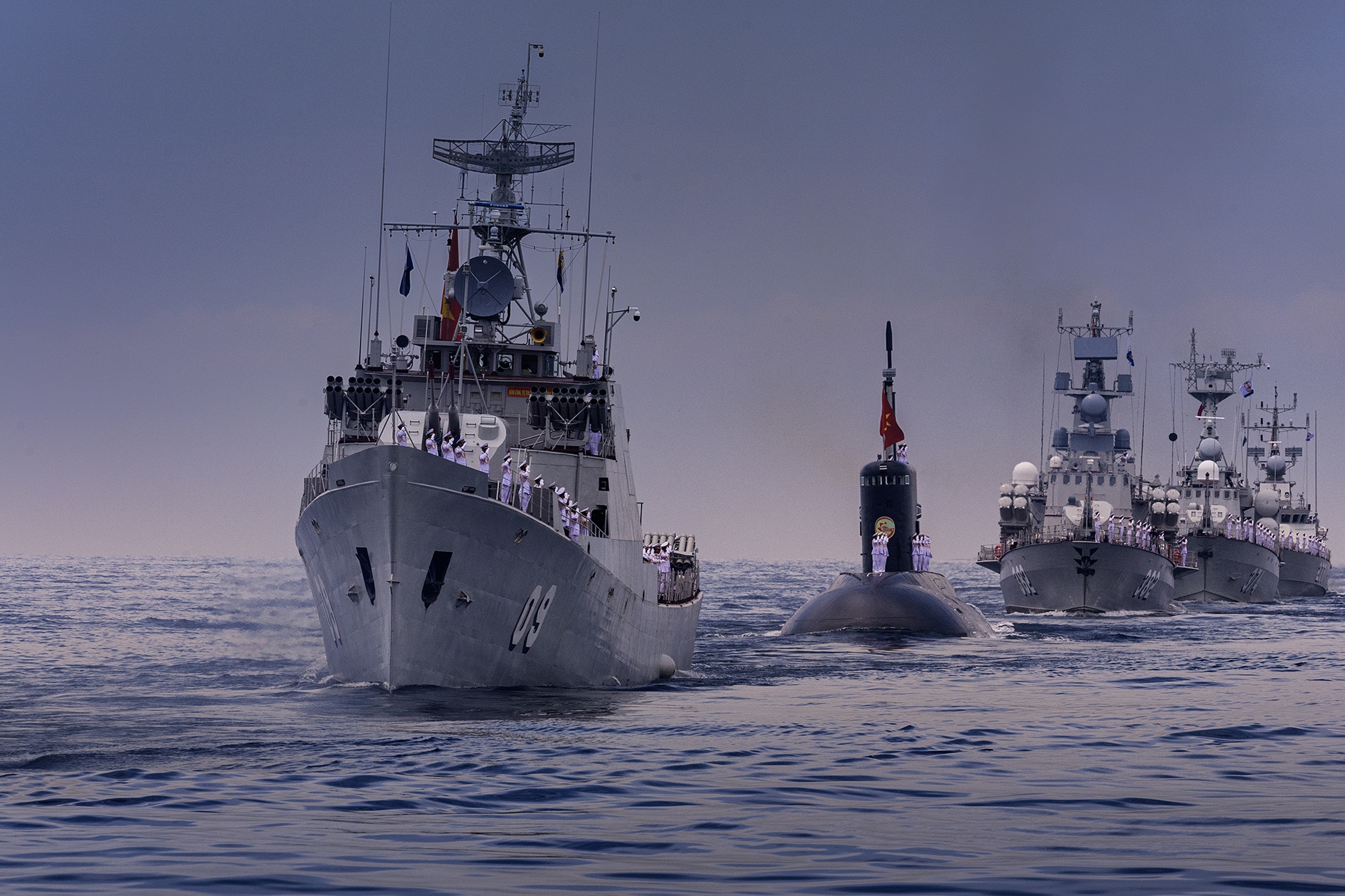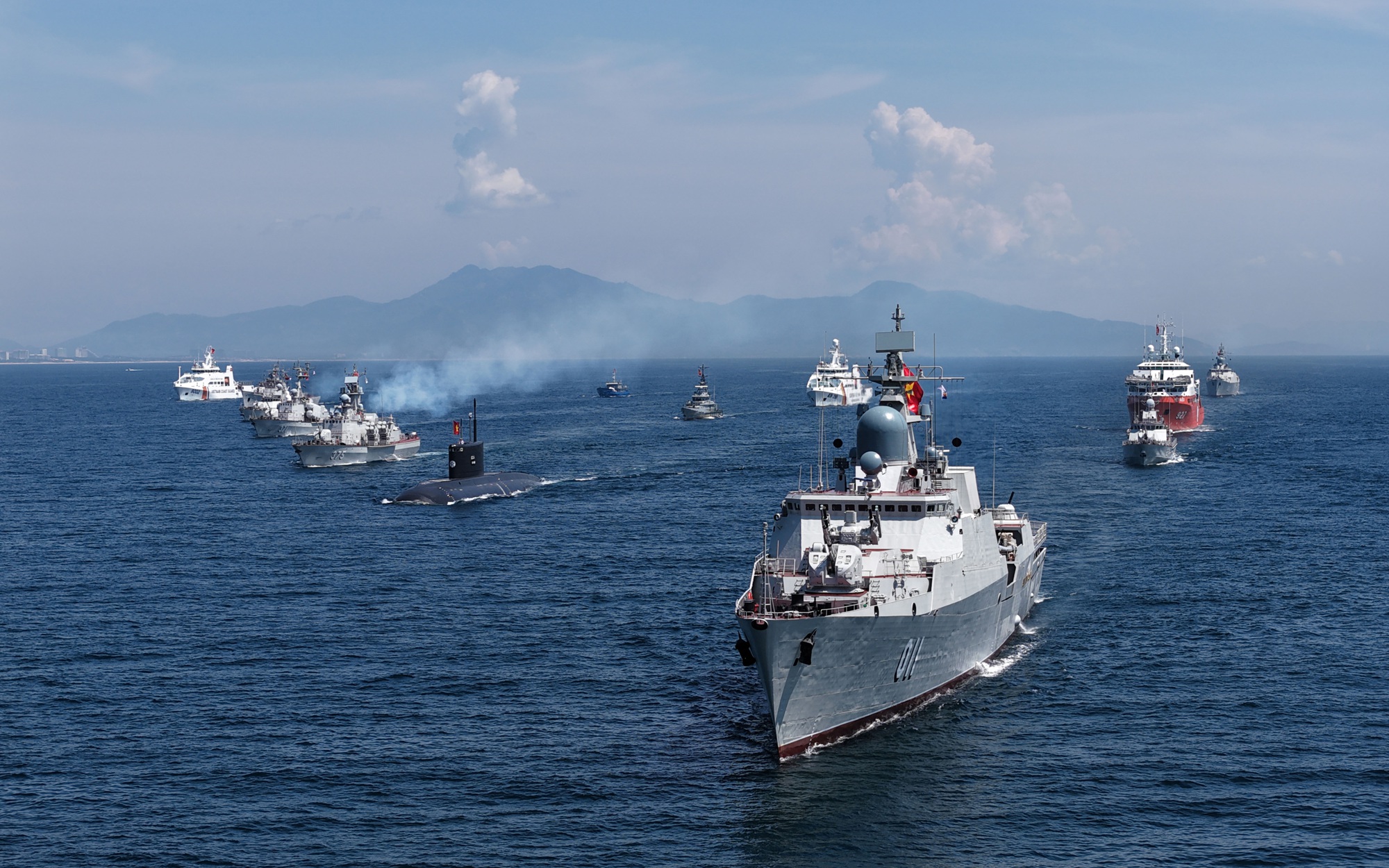 Các lực lượng vũ trang tham gia diễu binh trên biển tại Căn cứ quân sự Cam Ranh, tỉnh Khánh Hòa, rời bến làm nhiệm vụ.