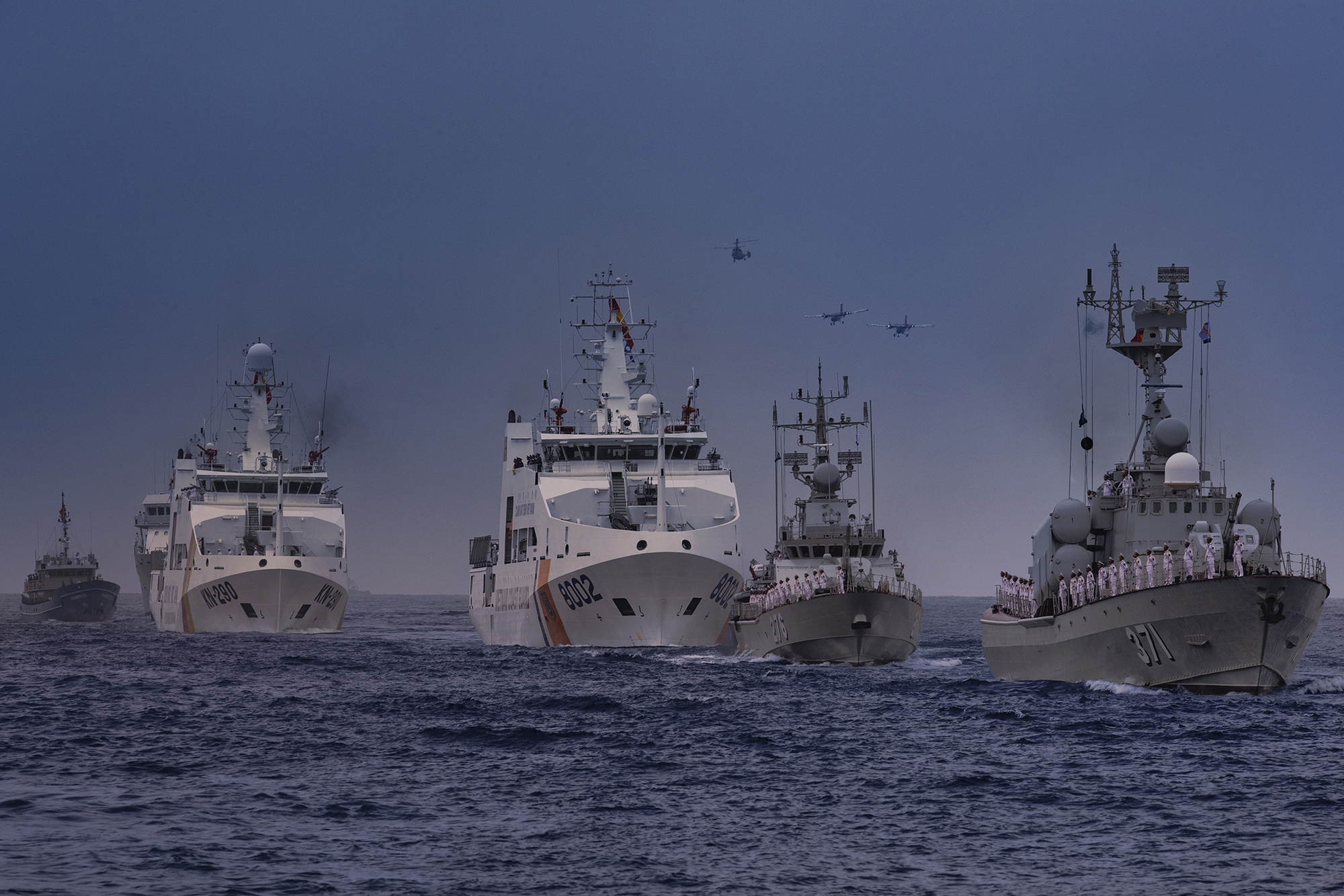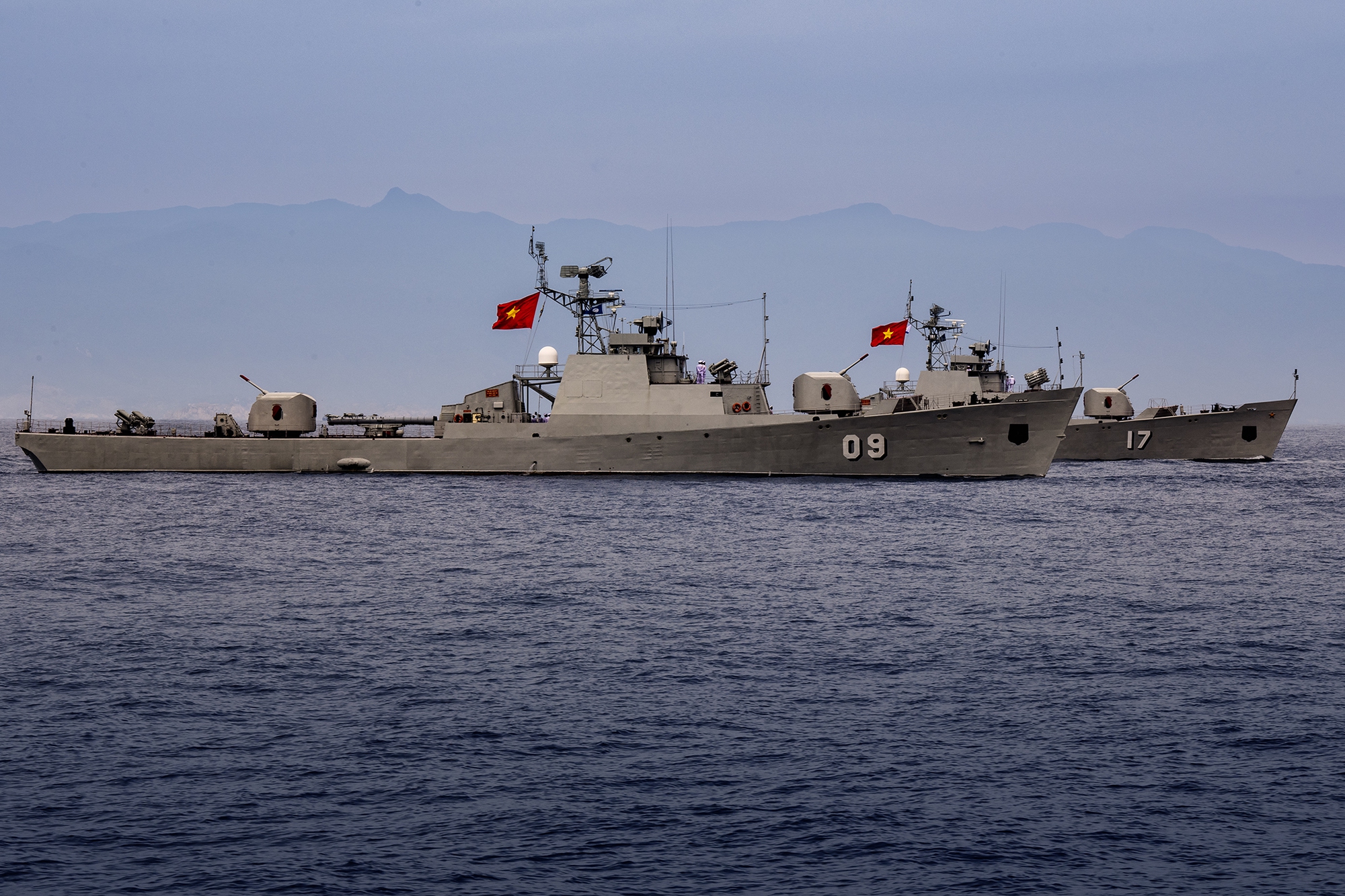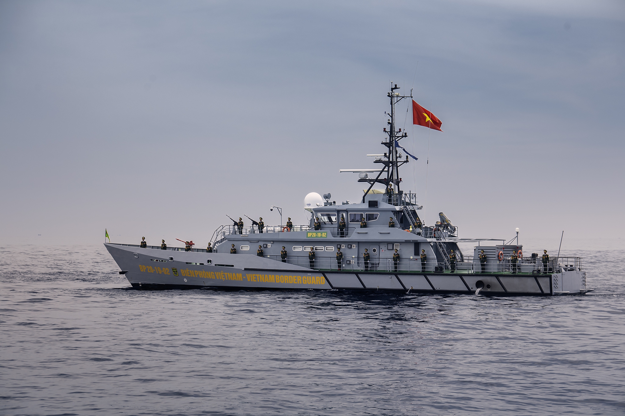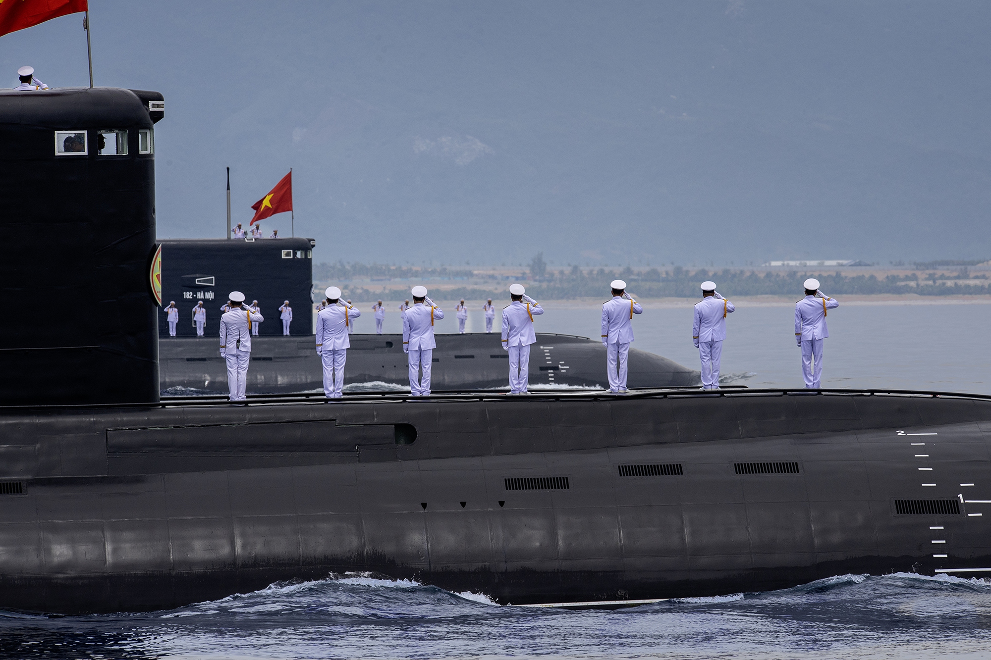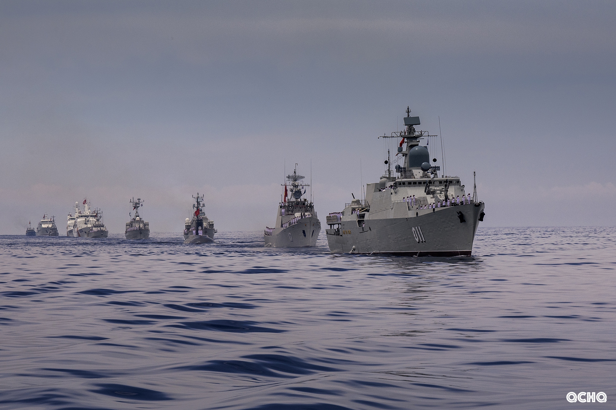 Các lực lượng vũ trang tham gia diễu binh trên biển tại Căn cứ quân sự Cam Ranh, tỉnh Khánh Hòa, rời bến làm nhiệm vụ.