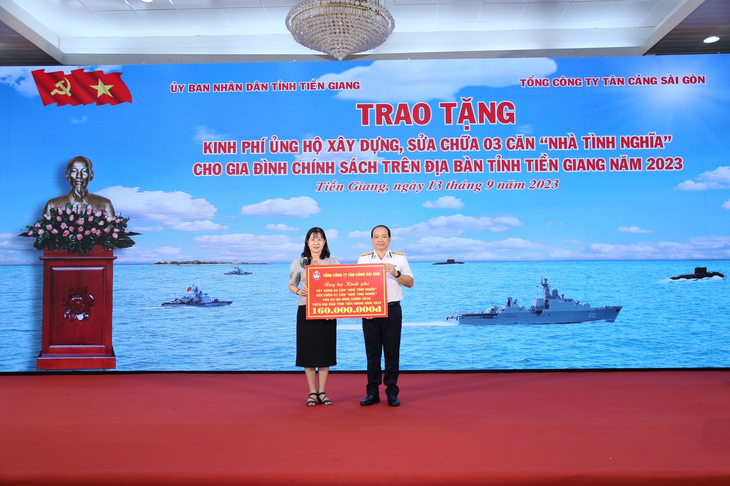 - (TCBVN). Sáng 13/9, tại TP.Mỹ Tho, Tổng Công ty Tân Cảng Sài Gòn, Quân chủng Hải quân phối hợp với Tỉnh ủy, UBND tỉnh Tiền Giang tổ chức chương trình “Hải quân nhận đỡ đầu con ngư dân” trên địa bàn tỉnh Tiền Giang.