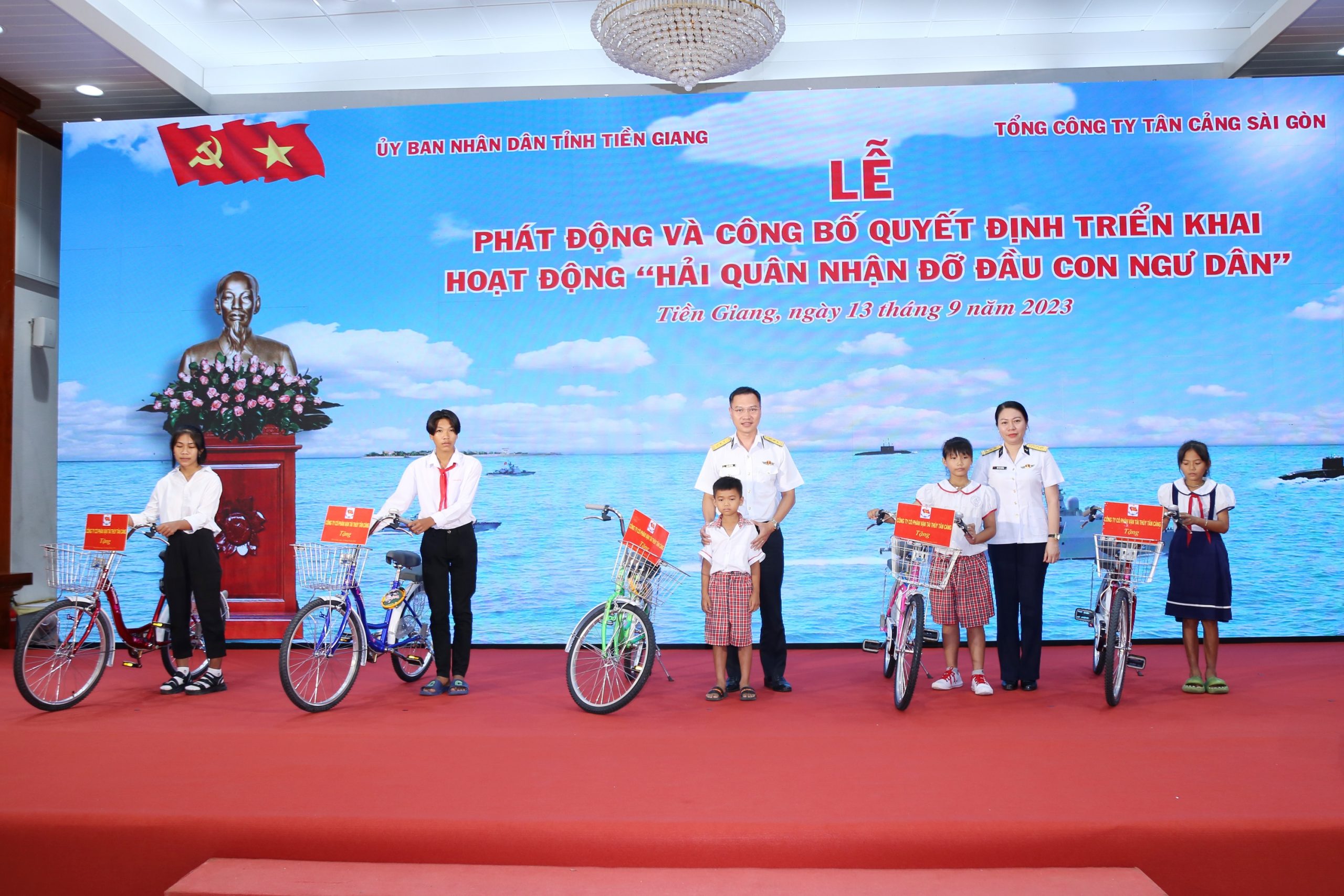 Phát biểu tại buổi lễ, đồng chí Nguyễn Thành Diệu, Phó Chủ tịch UBND tỉnh Tiền Giang trân trọng cảm ơn tình cảm của Quân chủng Hải quân và Tổng Công ty Tân Cảng Sài Gòn đã dành cho ngư dân và con ngư dân khó khăn của tỉnh. Khẳng định chương trình nhân văn này có ý nghĩa tiếp sức lớn lao cho con ngư dân có hoàn cảnh khó khăn, phấn đấu vươn lên trong học tập và cuộc sống. Đồng chí Nguyễn Thành Diệu mong muốn, Tổng Công ty tiếp tục quan tâm, lan toả chương trình, cùng với sự chung tay của các cấp chính quyền, hỗ trợ nhiều hơn cho các con ngư dân trong thời gian tới.