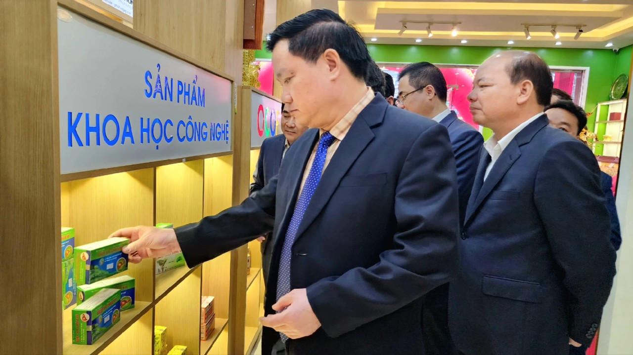 Thứ trưởng Bộ Khoa học và Công nghệ Nguyễn Hoàng Giang đánh giá cao về chất lượng sản phẩm của Công ty CPTM Dược VTYT Khải Hà.