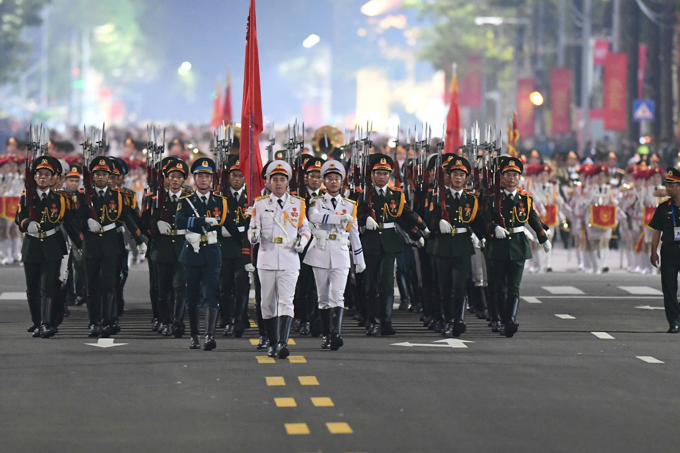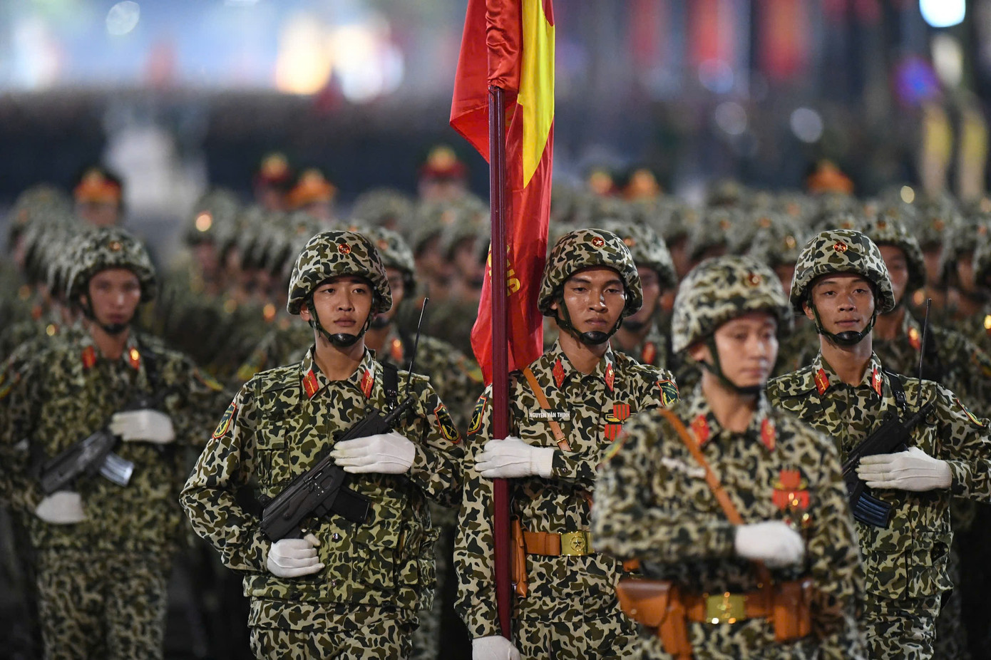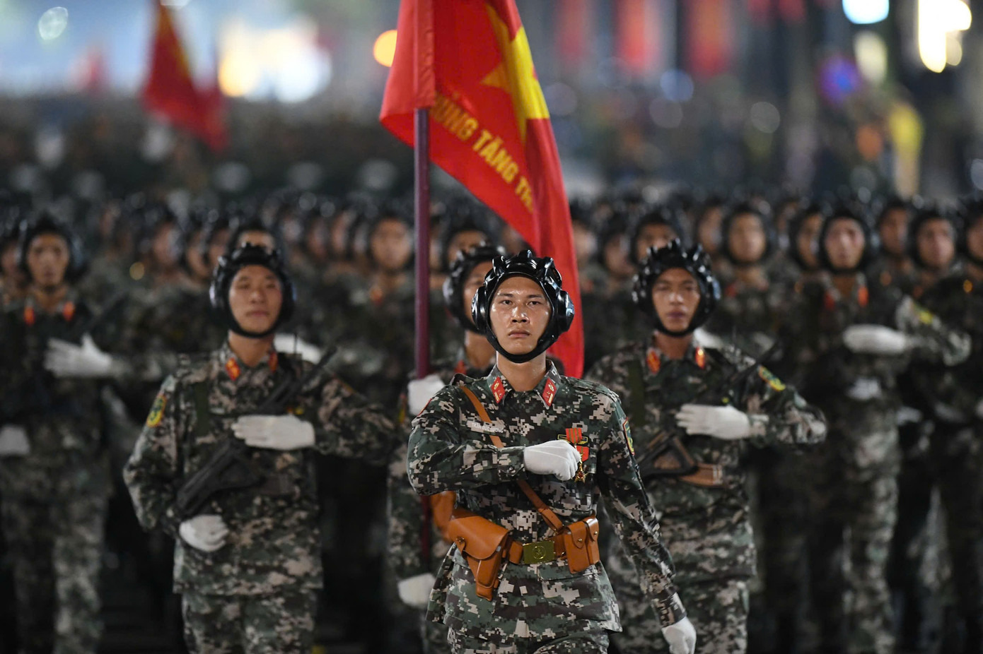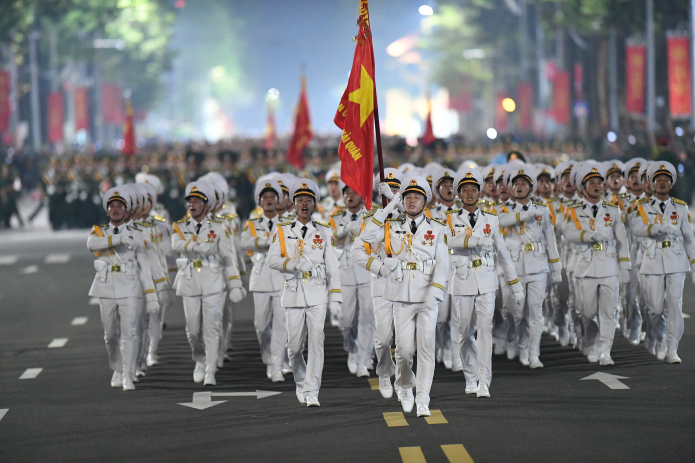 Đặc biệt, khối Quân kỳ do Thượng tướng Nguyễn Ngọc Thái, Thứ trưởng Bộ Quốc phòng, chỉ huy dẫn đầu. Quân kỳ quyết chiến quyết thắng, lấp lánh huân huy chương, đại diện cho máu xương và chiến công của các thế hệ bộ đội Việt Nam. Tiếp nối là các khối danh dự thuộc ba quân chủng: Lục quân, Hải quân, Phòng không – Không quân, cùng lực lượng Biên phòng, Cảnh sát biển, Hậu cần – Quân y, học viên các học viện, sĩ quan đặc nhiệm, tác chiến điện tử và không gian mạng. Tất cả tạo thành đội hình nghi lễ hùng tráng, biểu tượng của sức mạnh quân đội nhân dân trong thời kỳ mới.
