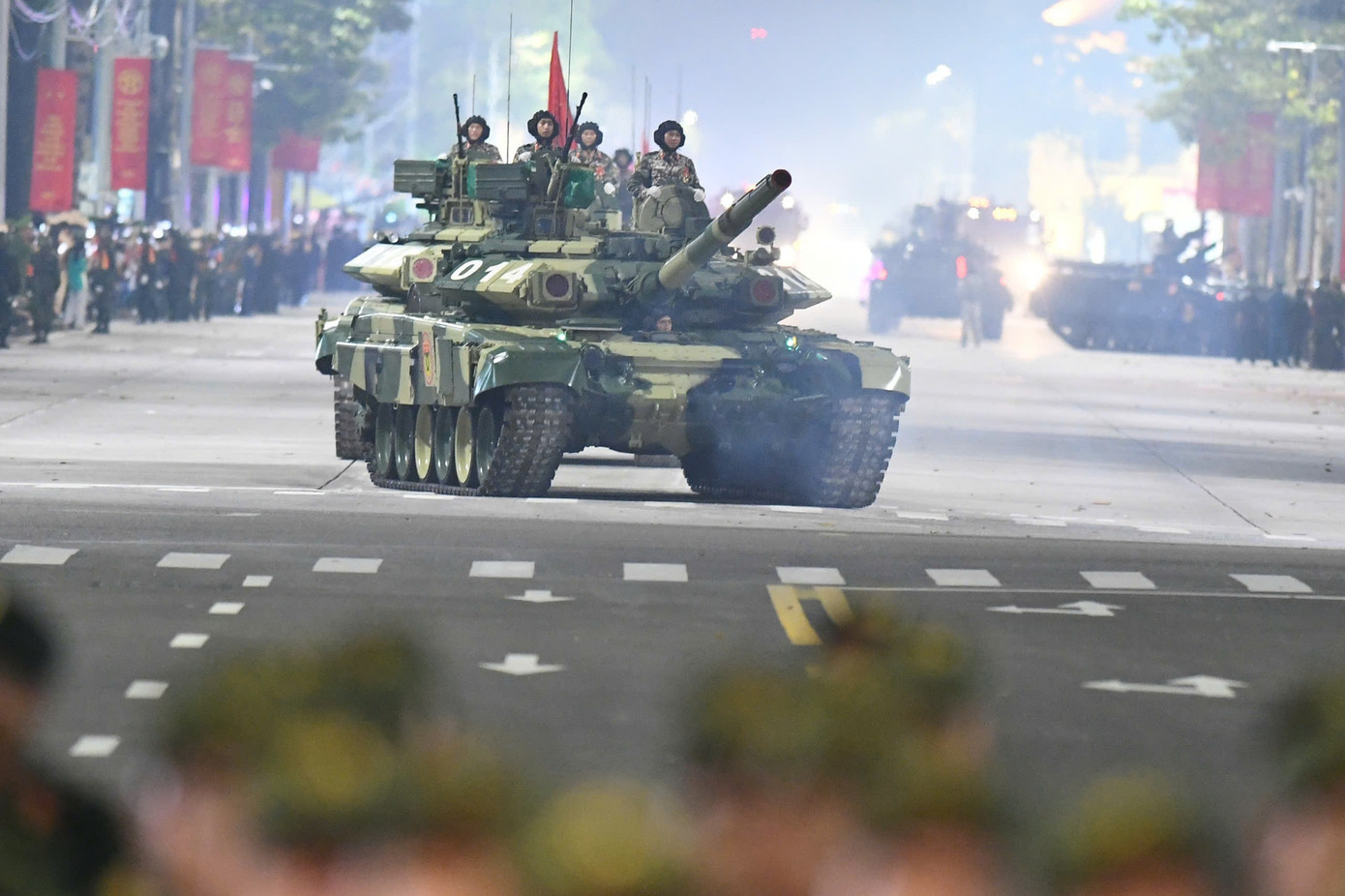 Các khối xe cơ giới quân sự cũng lần lượt xuất hiện theo đúng nghi thức duyệt binh, từ xe tăng T-54B cải tiến, T-90S, T-62 cho đến các dòng thiết giáp, pháo binh, tên lửa, UAV do Việt Nam tự nghiên cứu, phát triển. Đây không chỉ là phần trình diễn kỹ thuật, mà còn là nghi lễ tôn vinh sức mạnh công nghiệp quốc phòng và sự trưởng thành của Quân đội nhân dân Việt Nam.