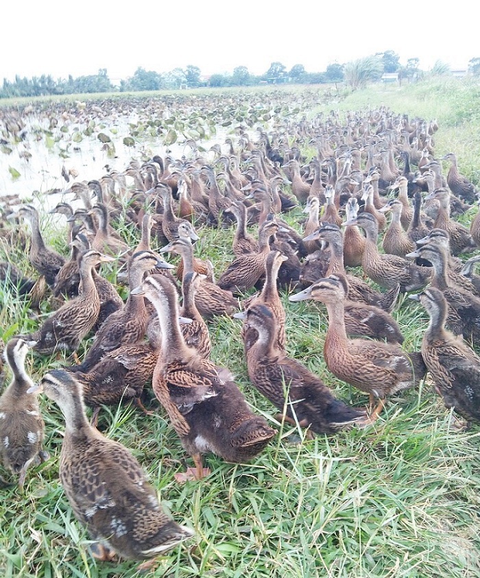 Đàn vịt trời được chăn nuôi theo hướng an toàn sinh học trên cánh đồng phường Lam Sơn