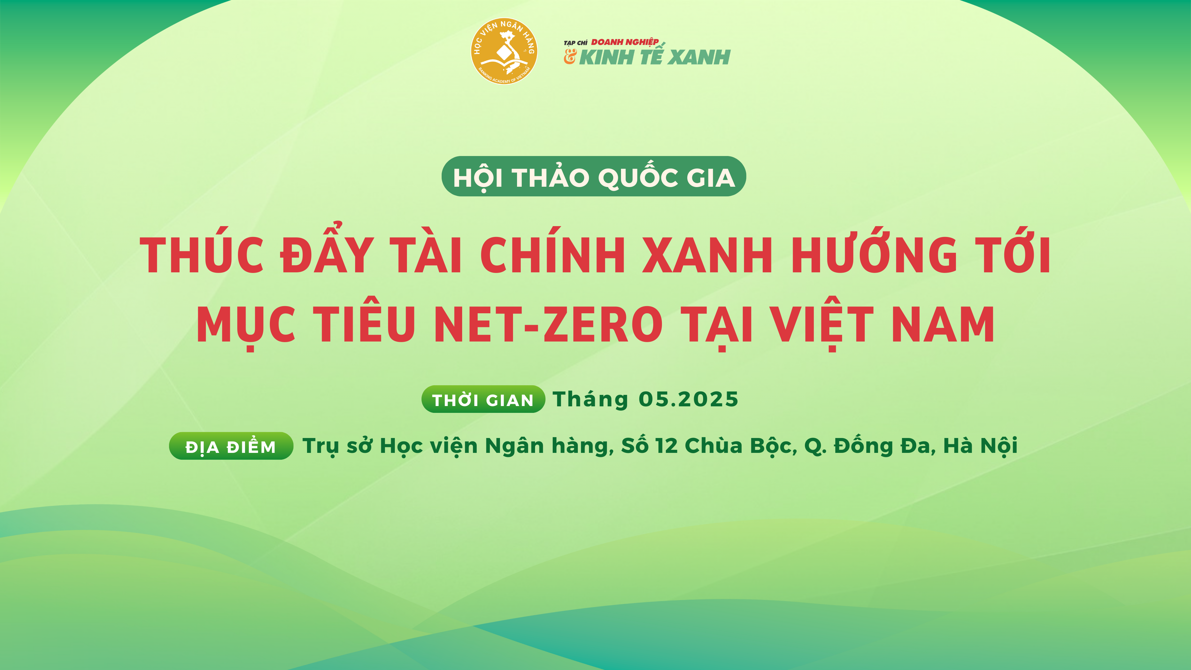 Nhằm tạo ra diễn đàn học thuật uy tín để cùng thảo luận, chia sẻ tri thức và kinh nghiệm về vấn đề cấp thiết này, Học viện Ngân hàng phối hợp cùng Tạp chí Doanh nghiệp và Kinh tế xanh, Tạp chí Kinh tế – Luật và Ngân hàng sẽ tổ chức Hội thảo Quốc gia với chủ đề “Thúc đẩy tài chính xanh hướng tới mục tiêu Net-Zero tại Việt Nam” vào ngày 20/5/2025, tại trụ sở chính (số 12 Chùa Bộc, quận Đống Đa, Hà Nội). Hội thảo được tổ chức theo hình thức kết hợp giữa trực tiếp và trực tuyến, dự kiến thu hút sự tham gia của khoảng 200 đại biểu là các nhà hoạch định chính sách đến từ Ngân hàng Nhà nước, Bộ Tài chính; các chuyên gia kinh tế – tài chính, đại diện các Ngân hàng thương mại, Tập đoàn, doanh nghiệp, cùng các đơn vị truyền thông uy tín.