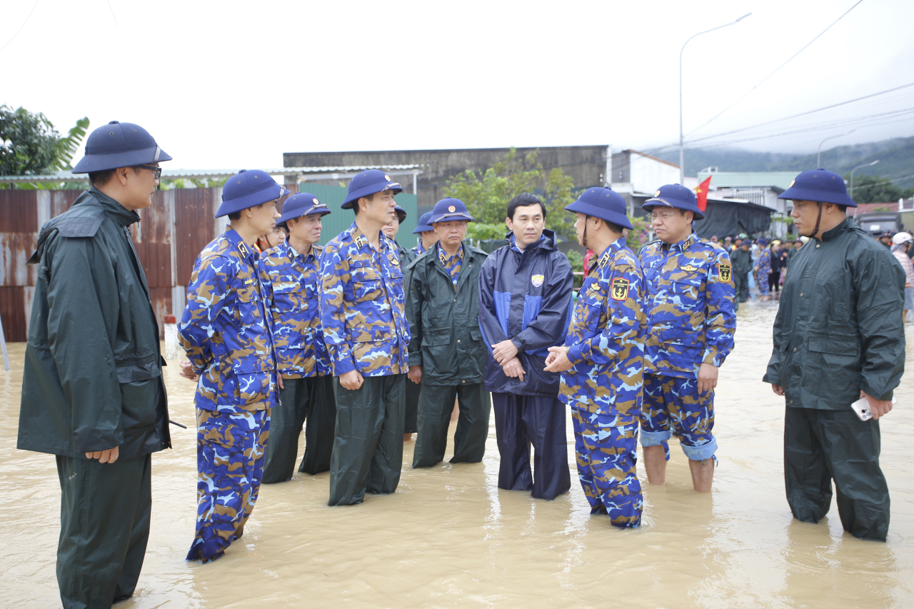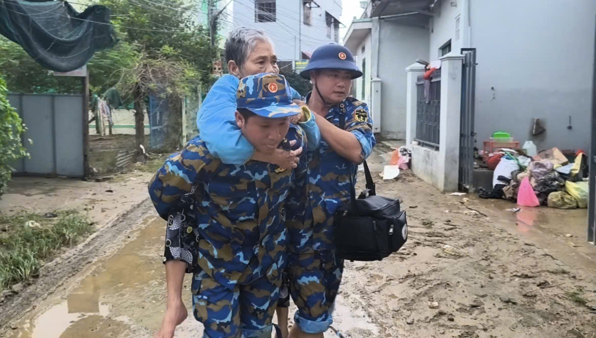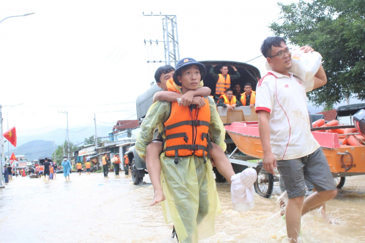 Ngay trong đêm, lực lượng nhanh chóng phối hợp với cơ quan chức năng sơ tán người dân và tài sản bằng xuồng đến khu vực an toàn. Tại 02 xã Diên Điền, Diên Khánh, tỉnh Khánh Hòa, nơi bị ngập sâu gần như toàn bộ, cán bộ, chiến sĩ Tiểu đoàn 795, Lữ đoàn 126 Hải quân đã cứu trợ lương thực, nước uống và đưa hơn 50 hộ dân ra khỏi vùng nguy hiểm.