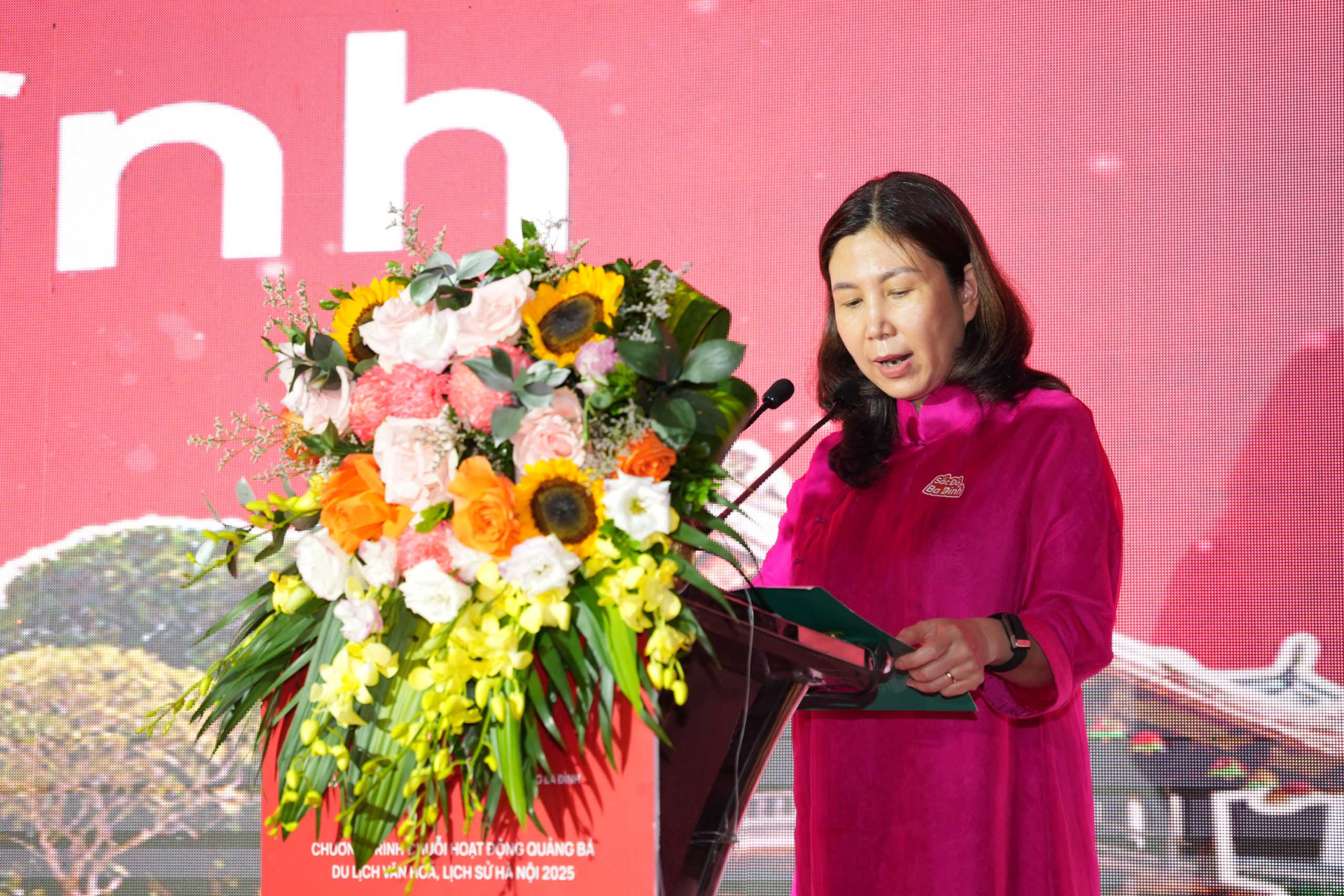 Phát biểu khai mạc, Giám đốc Sở Du lịch Hà Nội, bà Đặng Hương Giang cho biết ” Chương trình chuỗi hoạt động du lịch văn hóa, lịch sử Hà Nội năm 2025 với chủ đề “Sắc đỏ Ba Đình” là sự kiện xúc tiến, quảng bá du lịch có ý nghĩa quan trọng của Thủ đô, nhằm tôn vinh giá trị văn hóa – lịch sử, lan tỏa tinh thần yêu nước, khơi dậy niềm tự hào dân tộc, đồng thời khẳng định hình ảnh Hà Nội sáng tạo, giàu bản sắc. Chương trình góp phần kết nối điểm đến, giới thiệu các sản phẩm, tour tuyến du lịch tại địa bàn phường Ba Đình, qua đó thu hút ngày càng nhiều du khách đến với Thủ đô, đóng góp tích cực vào sự nghiệp phát triển du lịch Việt Nam cũng như tăng trưởng kinh tế – xã hội của Thành phố. Xuyên suốt 04 ngày của Chương trình (từ ngày 30/8/2025 – 02/9/2025), nhân dân và du khách được trải nghiệm đa dạng các không gian, hoạt động đặc sắc, mới lạ như: Không gian Triển lãm Văn hoá lịch sử 80 năm Cách mạng tháng Tám thành công và Quốc khánh nước CHXHCN Việt Nam; Ký ức ẩm thực Hà Nội xưa; Chuỗi trình diễn nghệ thuật độc lập; Tour du lịch “Chuyến tàu di sản”; Tương tác tại Trạm tiếp sức nước uống ngày nóng cho người dân, Trạm check in nhận cờ Việt Nam, Trạm “Lưu lại cảm xúc” về Độc lập, Tự do, Hạnh phúc; Trạm giới thiệu và trải nghiệm du lịch xanh, du lịch số Hà Nội….” .
