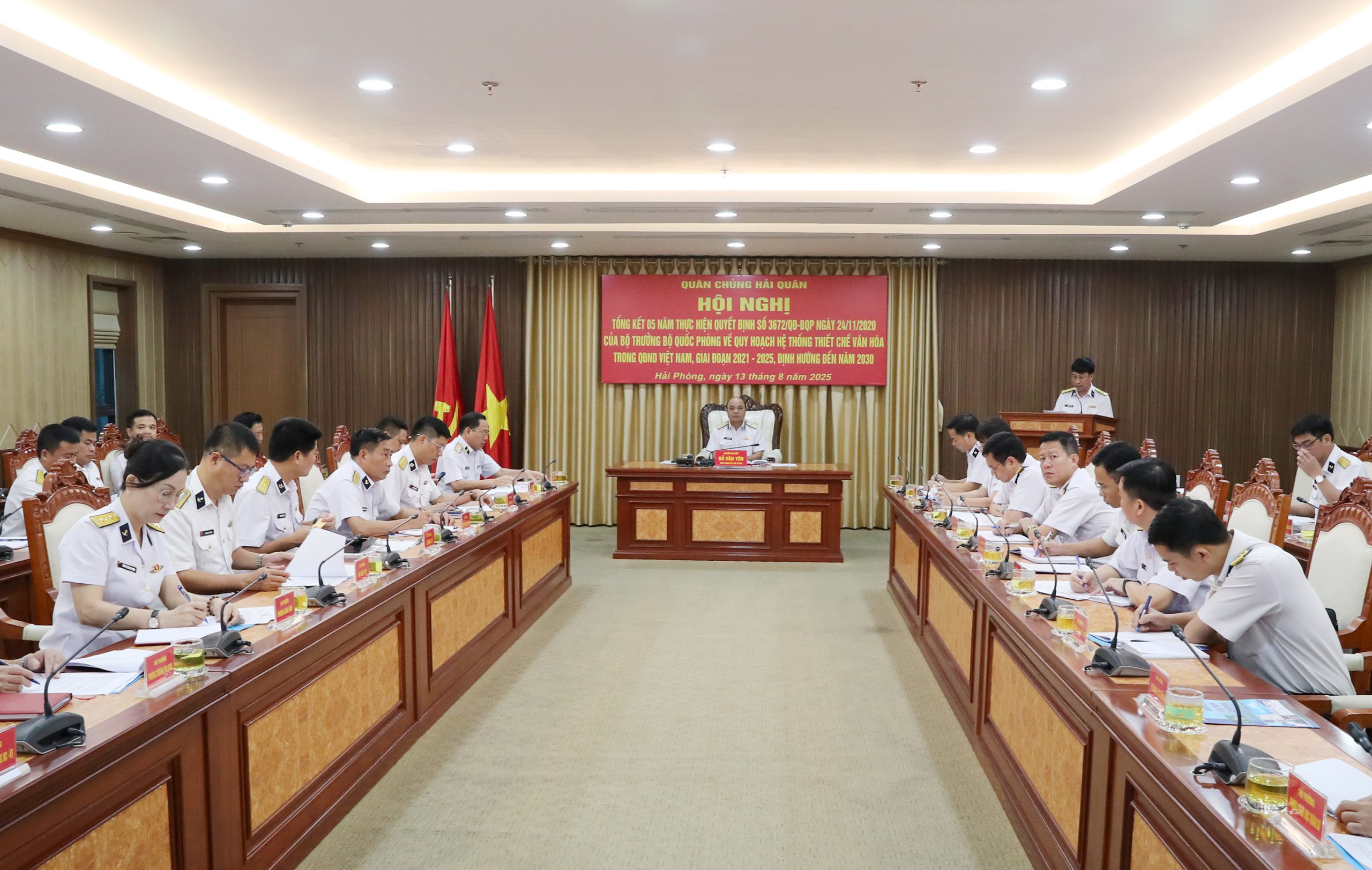 Tạp chí Biển Việt Nam - Sáng 13/8, Quân chủng Hải quân tổ chức Hội nghị tổng kết 5 năm thực hiện Quyết định số 3672/QĐ-BQP ngày 24/1/2020 của Bộ trưởng Bộ Quốc phòng về Quy hoạch hệ thống thiết chế văn hóa trong Quân đội nhân dân Việt Nam, giai đoạn 2021-2025, định hướng đến năm 2023. Hội nghị được tổ chức trực tiếp kết hợp trực tuyến tới 6 điểm cầu với gần 300 đại biểu tham dự.