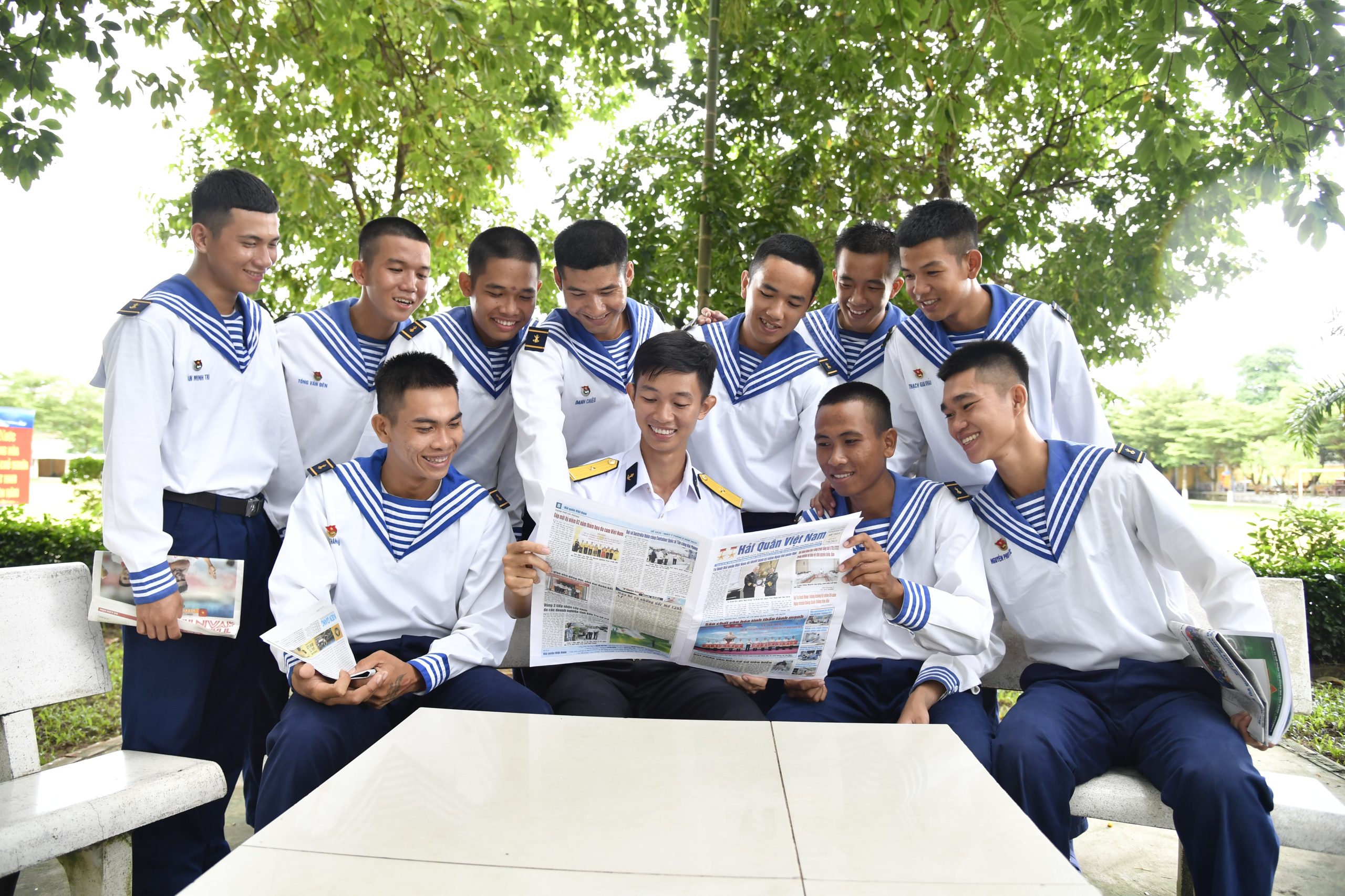Phút giải lao giữa giờ huấn luyện của cán bộ, chiến sĩ Vùng 5 Hải quân.