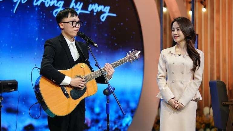Từ niềm đam mê ấy, Trung Minh cùng những người bạn đồng hành thành lập ban nhạc Hy Vọng – cái tên mang theo mong ước về một tương lai tươi sáng hơn, không chỉ cho riêng mình mà cho tất cả những ai đang cần thêm động lực để bước tiếp. Những buổi biểu diễn trên sân khấu, trên phố đi bộ Tràng Tiền hay giữa không gian đời thường đã đưa âm nhạc của Minh đến gần hơn với công chúng, lan tỏa năng lượng tích cực và niềm tin vào cuộc sống. Ảnh: VTV