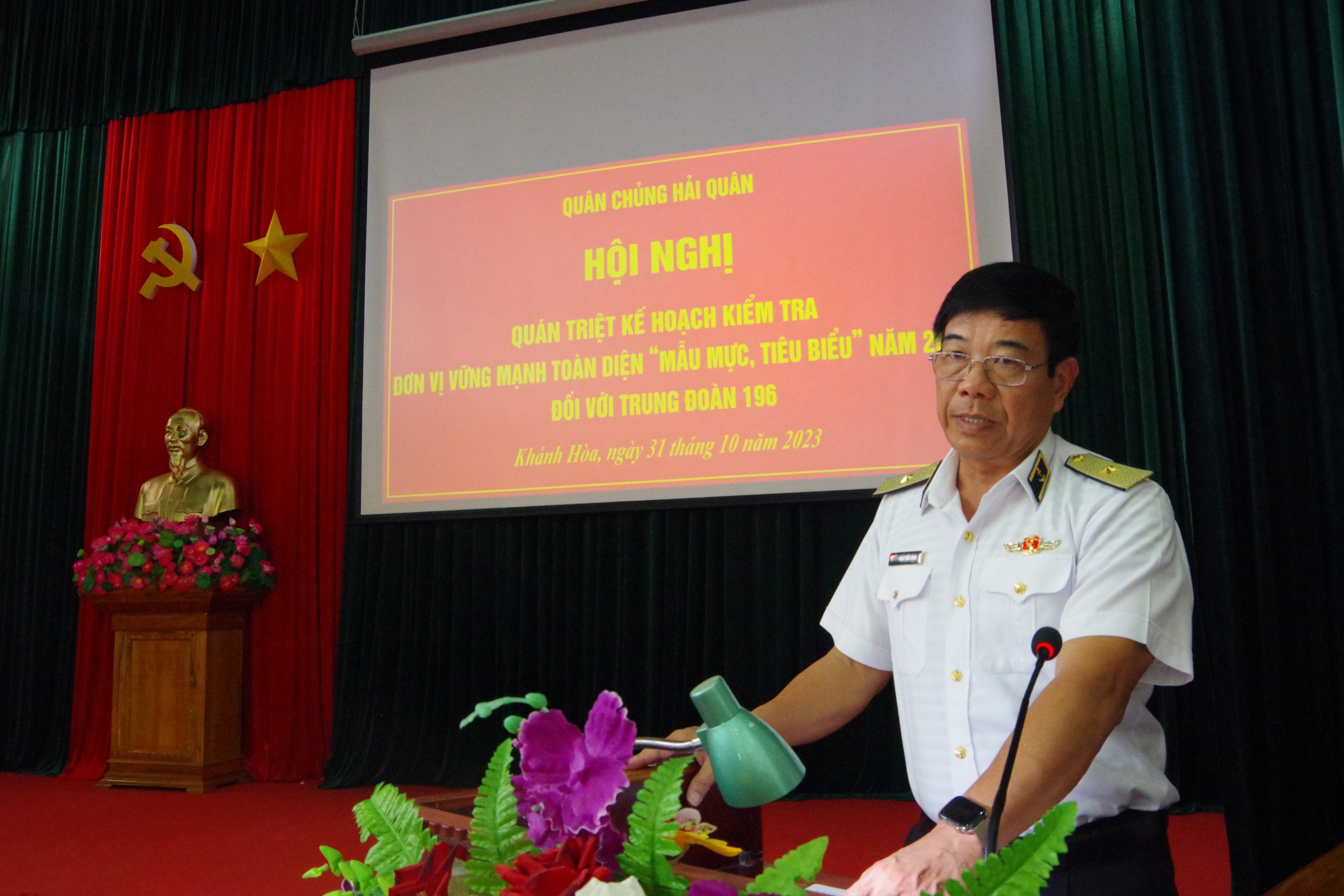 - (TCBVN). Chiều ngày 31-10, tại TP Cam Ranh, tỉnh Khánh Hòa Chuẩn đô đốc Phan Tuấn Hùng, Phó Tư lệnh Hải quân làm trưởng đoàn đã tiến hành kiểm tra đơn vị vững mạnh toàn diện, “mẫu mực, tiêu biểu” năm 2023 đối với Trung đoàn 196 Hải quân. Tham gia đoàn kiểm tra có đại diện các cơ quan chức năng của Quân chủng Hải quân.