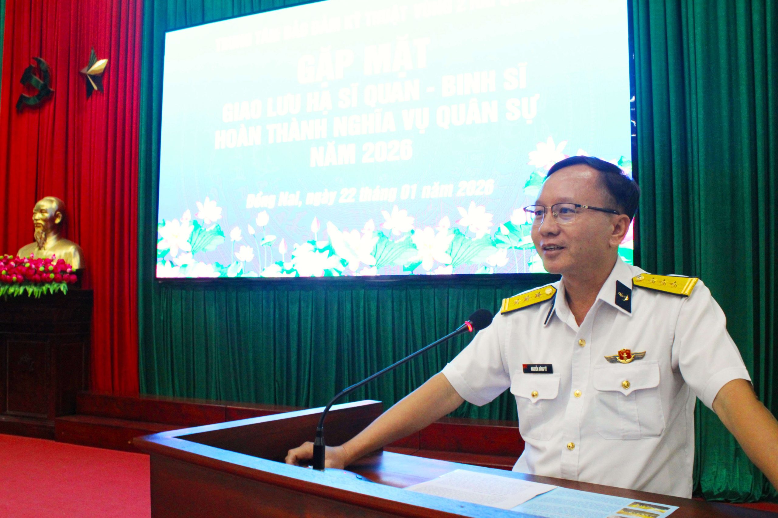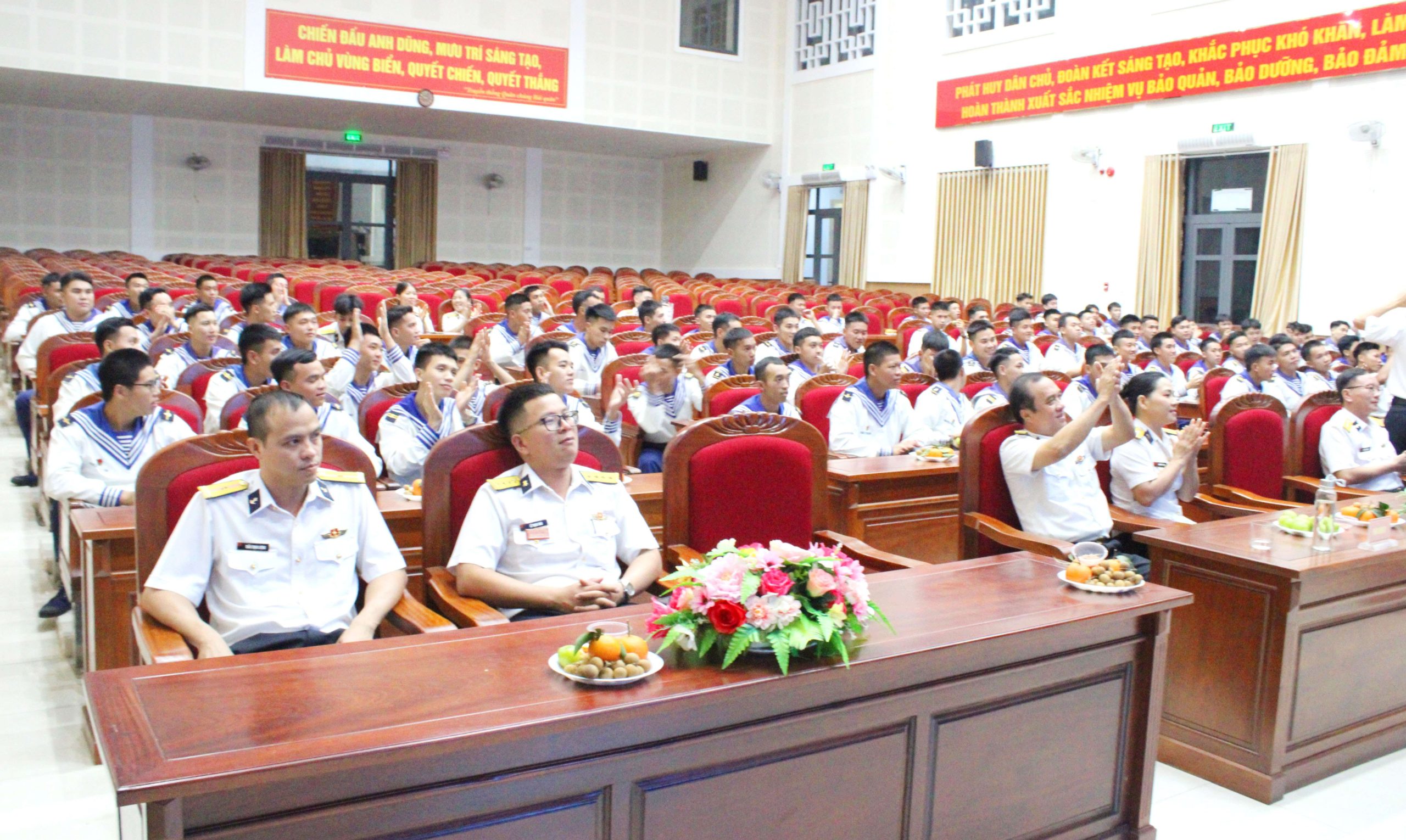 Phát biểu tại buổi gặp mặt, Thượng tá Nguyễn Hùng Vỹ, Phó Chính ủy Trung tâm ghi nhận, biểu dương những cống hiến của các chiến sĩ sau hai năm thực hiện nhiệm vụ tại đơn vị. Các đồng chí chiến sĩ có lập trường tư tưởng chính trị vững vàng; phẩm chất đạo đức tốt; đoàn kết, kỷ luật; nhiệt tình, trách nhiệm trong công tác; luôn nhận và hoàn thành tốt nhiệm vụ được giao. Đồng chí mong muốn trong thời gian tới, các chiến sĩ tiếp tục phát huy truyền thống của người chiến sĩ Hải quân nhân dân Việt Nam và thành tích của bản thân, tích cực rèn luyện, lao động, sản xuất, góp phần cùng địa phương nơi cư trú thúc đẩy phát triển kinh tế – xã hội, củng cố quốc phòng – an ninh ngày càng vững mạnh, xây dựng quê hương, đất nước ngày càng giàu đẹp.
