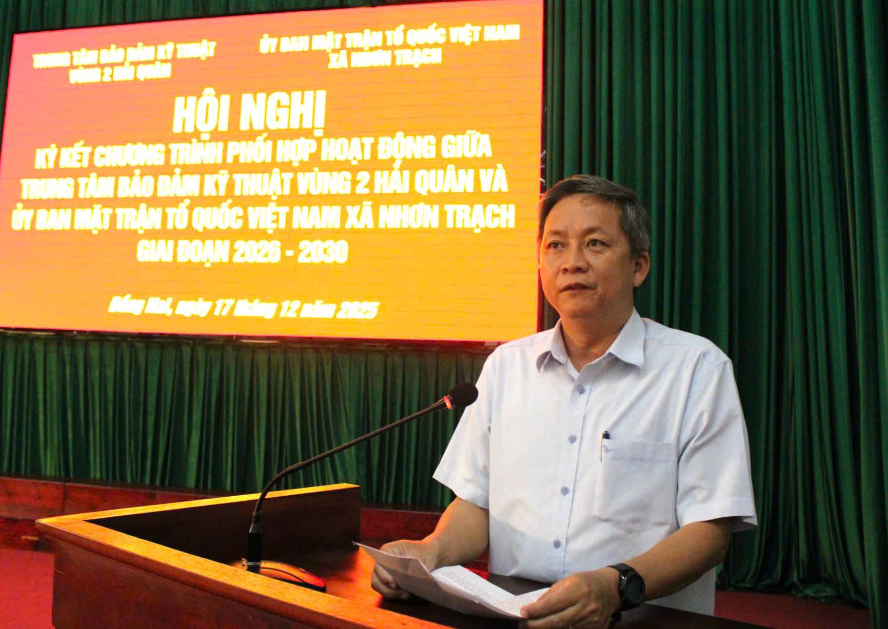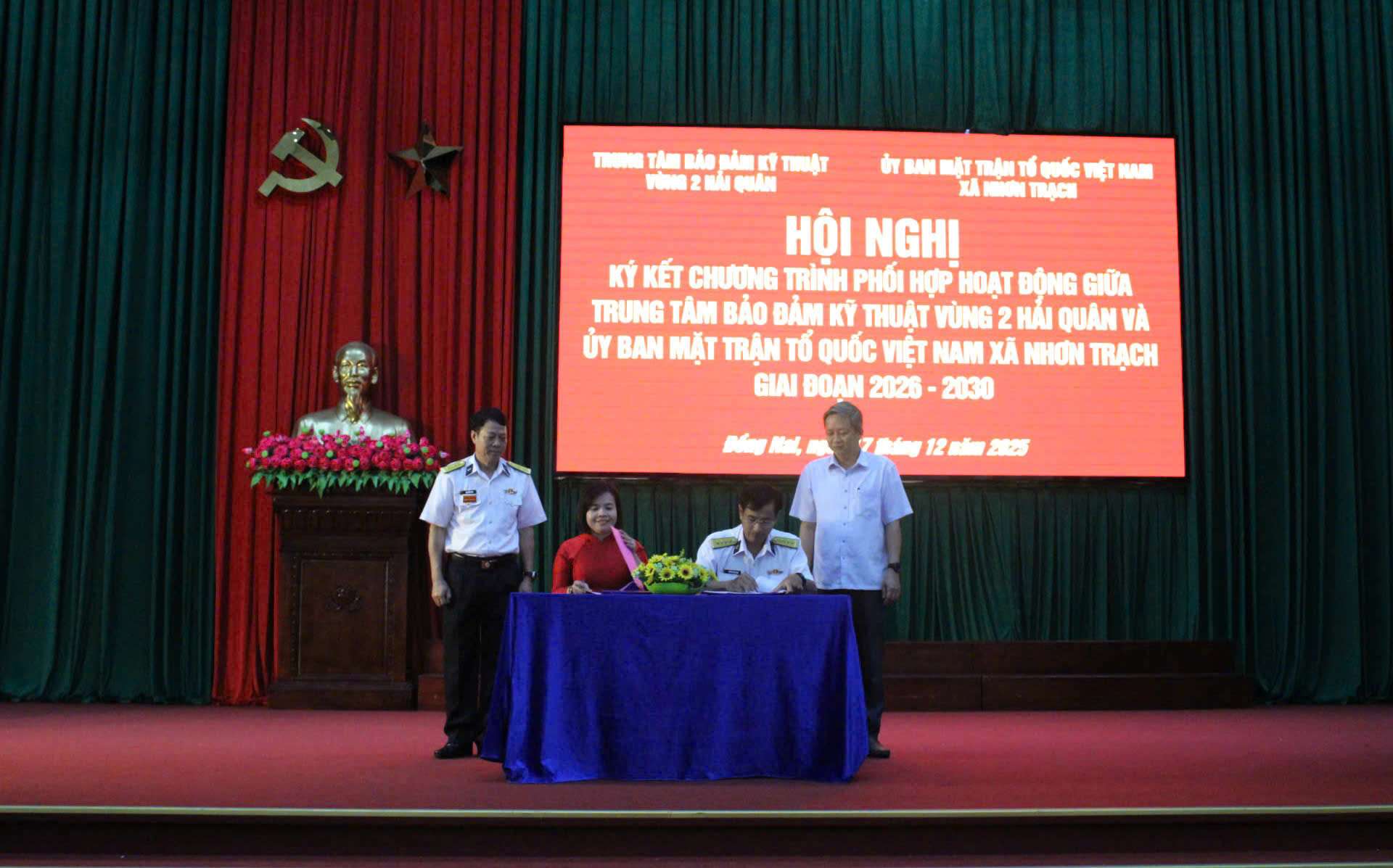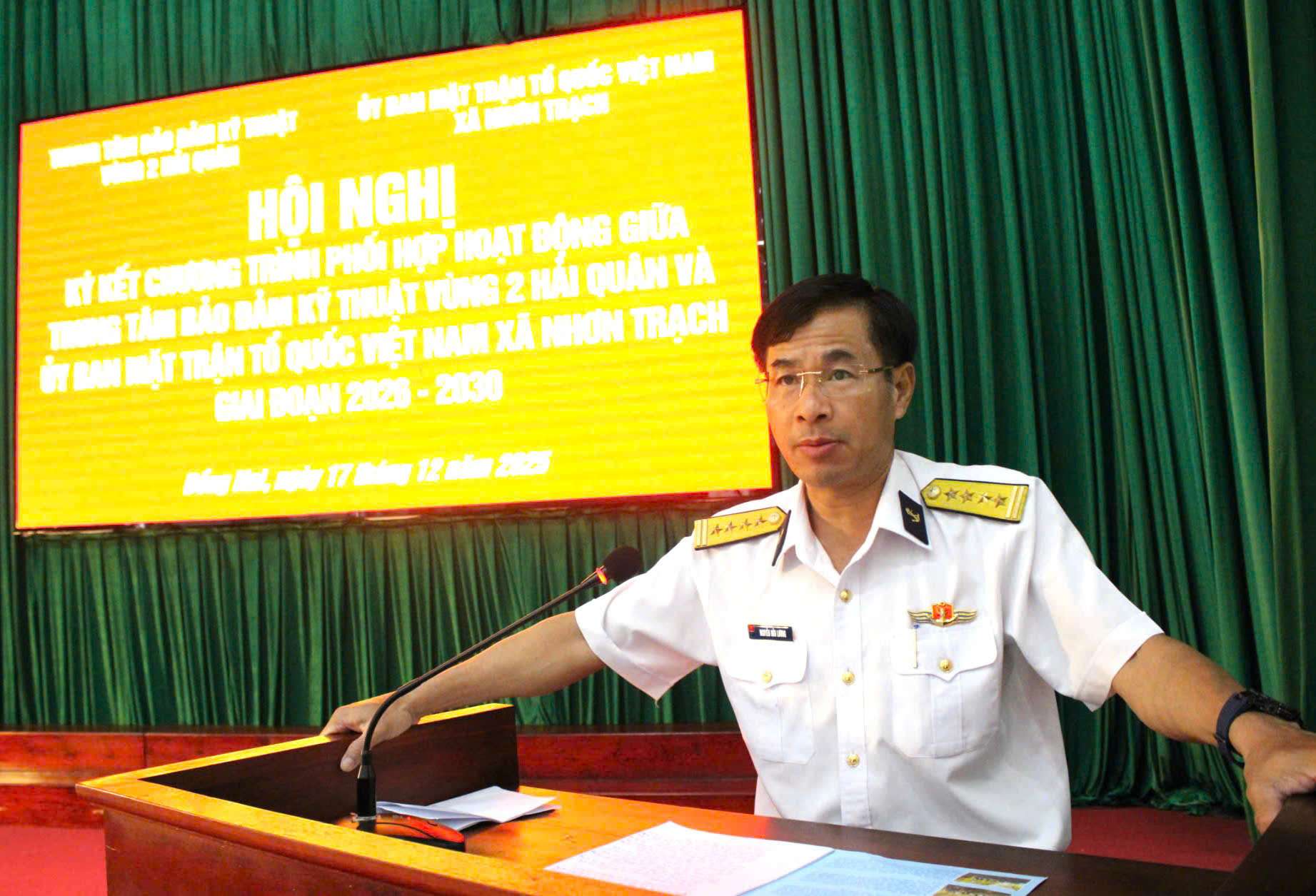 Trung tâm Bảo đảm kỹ thuật, Vùng 2 Hải quân phối hợp Ủy ban MTTQ Việt Nam xã Nhơn Trạch giai đoạn 2026–2030