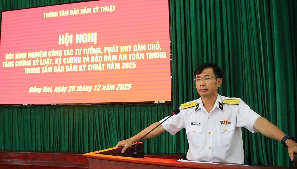Phát biểu kết luận hội nghị, Đại tá Nguyễn Hữu Lương, Chính ủy Trung tâm yêu cầu các cơ quan, đơn vị quán triệt, thực hiện nghiêm các nhiệm vụ, giải pháp của Quân chủng, Vùng, Trung tâm về công tác tư tưởng, phát huy dân chủ, tăng cường kỷ luật, kỷ cương và bảo đảm an toàn đã chỉ ra tại hội nghị các cấp. Tích cực đổi mới toàn diện nội dung, hình thức, phương pháp tiến hành, nhất là phương pháp nắm, quản lý, dự báo, định hướng và giải quyết tư tưởng bộ đội; công tác thi đua, khen thưởng phải đúng người, đúng việc; phát huy hiệu quả các thiết chế văn hóa, xây dựng môi trường văn hóa quân sự lành mạnh, thân thiện; luôn hành động vì lợi ích tập thể và thực hiện tốt chỉ đạo của đồng chí Tổng Bí thư Tô Lâm về “2 kiên định, 2 đẩy mạnh, 2 ngăn ngừa” và “5 vững”, để khơi dậy tinh thần tự chủ, tự tin, tự lực, tự cường, tự hào dân tộc, khát vọng cống hiến, ý thức, trách nhiệm của cấp ủy, tổ chức đảng, lãnh đạo, chỉ huy, cán bộ, chiến sĩ toàn Trung tâm; gắn xây dựng công tác chính quy, quản lý kỷ luật và bảo đảm an toàn với đẩy mạnh xây dựng đơn vị vững mạnh toàn diện “Mẫu mực, tiêu biểu”.