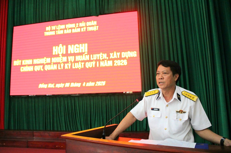 Tạp chí Biển Việt Nam - Ngày 06/4, tại xã Nhơn Trạch, tỉnh Đồng Nai, Trung tâm Bảo đảm kỹ thuật (BĐKT) Vùng 2 Hải quân tổ chức Hội nghị rút kinh nghiệm nhiệm vụ huấn luyện, xây dựng chính quy, quản lý kỷ luật quý I năm 2026. Đại tá Bùi Quốc Kiên, Chỉ huy trưởng Trung tâm dự và chủ trì.