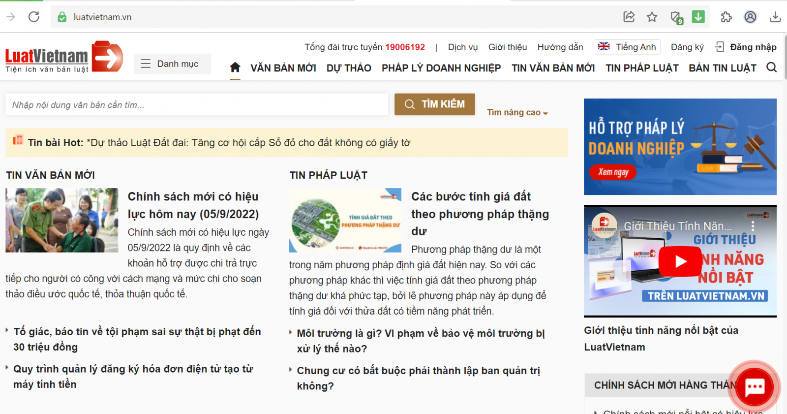Triển khai hoạt động từ tháng 10/2000, website LuatVietnam.vn là kho dữ liệu văn bản luật Việt Nam đầu tiên trên Internet, hệ thống văn bản khổng lồ, đa dạng, phong phú, đáp ứng nhu cầu tra cứu và cập nhật nhanh chóng, chính xác thông tin văn bản, chính sách Nhà nước của đông đảo nhà nghiên cứu, quản lý, các doanh nghiệp, cá nhân trong và ngoài nước.