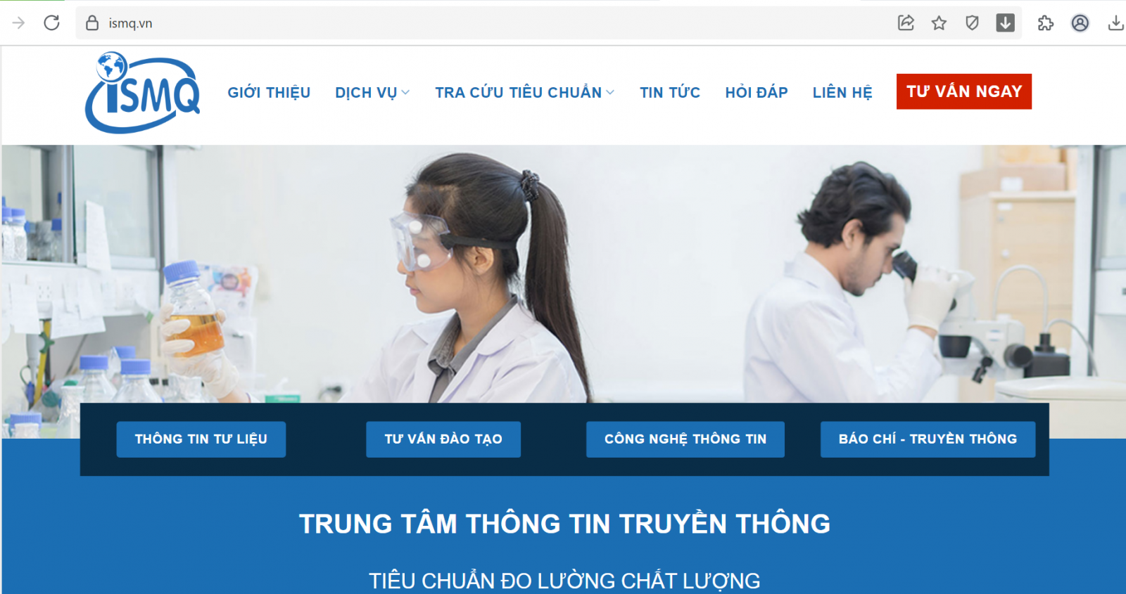Giao diện website Trung tâm Thông tin – Truyền thông Tiêu chuẩn Đo lường Chất lượng.