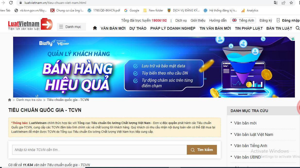 Tính năng tra cứu TCVN trên trang LuatVietnam.