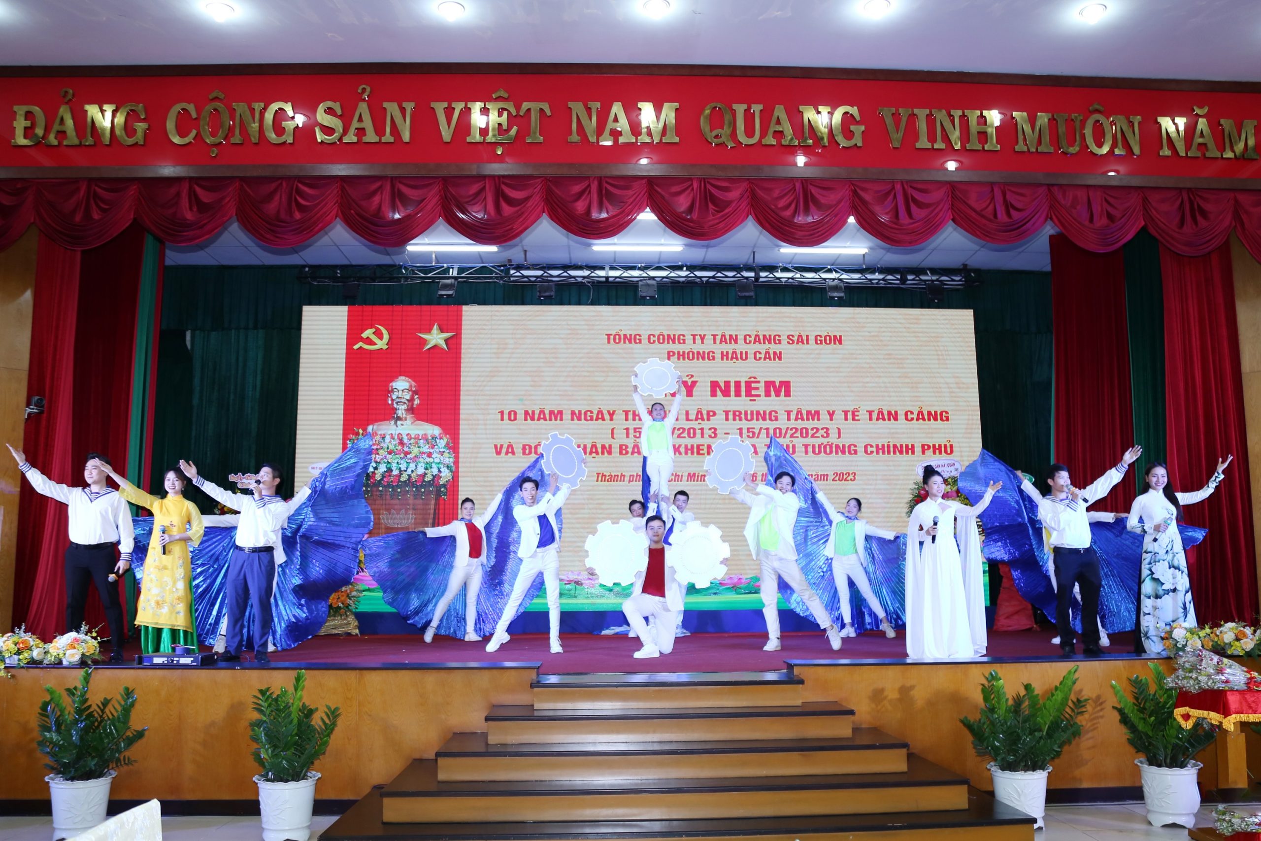 Văn nghệ chào mừngThành lập ngày 15/10/2013, Trung tâm Y tế Tân Cảng (TTYT Tân Cảng) có chức năng tham mưu về công tác Y tế, chăm sóc, bảo vệ sức khoẻ cán bộ, công nhân viên, người lao động Tổng công ty; thực hiện kết hợp quân dân y trong phòng chống dịch bệnh, chăm sóc, bảo vệ sức khoẻ nhân dân địa bàn đóng quân.Với các trang bị y tế mới, hiện đại như máy xét nghiệm huyết học, sinh hóa, máy siêu âm màu 4D, máy XQ kỹ thuật số, máy nội soi tiêu hóa, nội soi tai mũi họng, điện tim, hệ thống máy điều trị vật lý trị liệu- phục hồi chức năng, phòng nha khoa…. Tập thể y, bác sỹ TTYT Tân Cảng không ngừng học tập nâng cao trình độ, năng lực chuyên môn. Tích cực áp dụng công nghệ thông tin trong khám chữa bệnh- quản lý sức khỏe, nổi bật là ứng dụng SNP Care trên điện thoại di động giúp quản lý, bảo mật hồ sơ sức khỏe cá nhân; đăng ký khám, chữa bệnh từ xa; lấy số thứ tự bằng mã QR; hướng dẫn cấp cứu ban đầu; thông tin, tư vấn, tương tác chăm sóc sức khỏe và khai báo y tế điện tử…