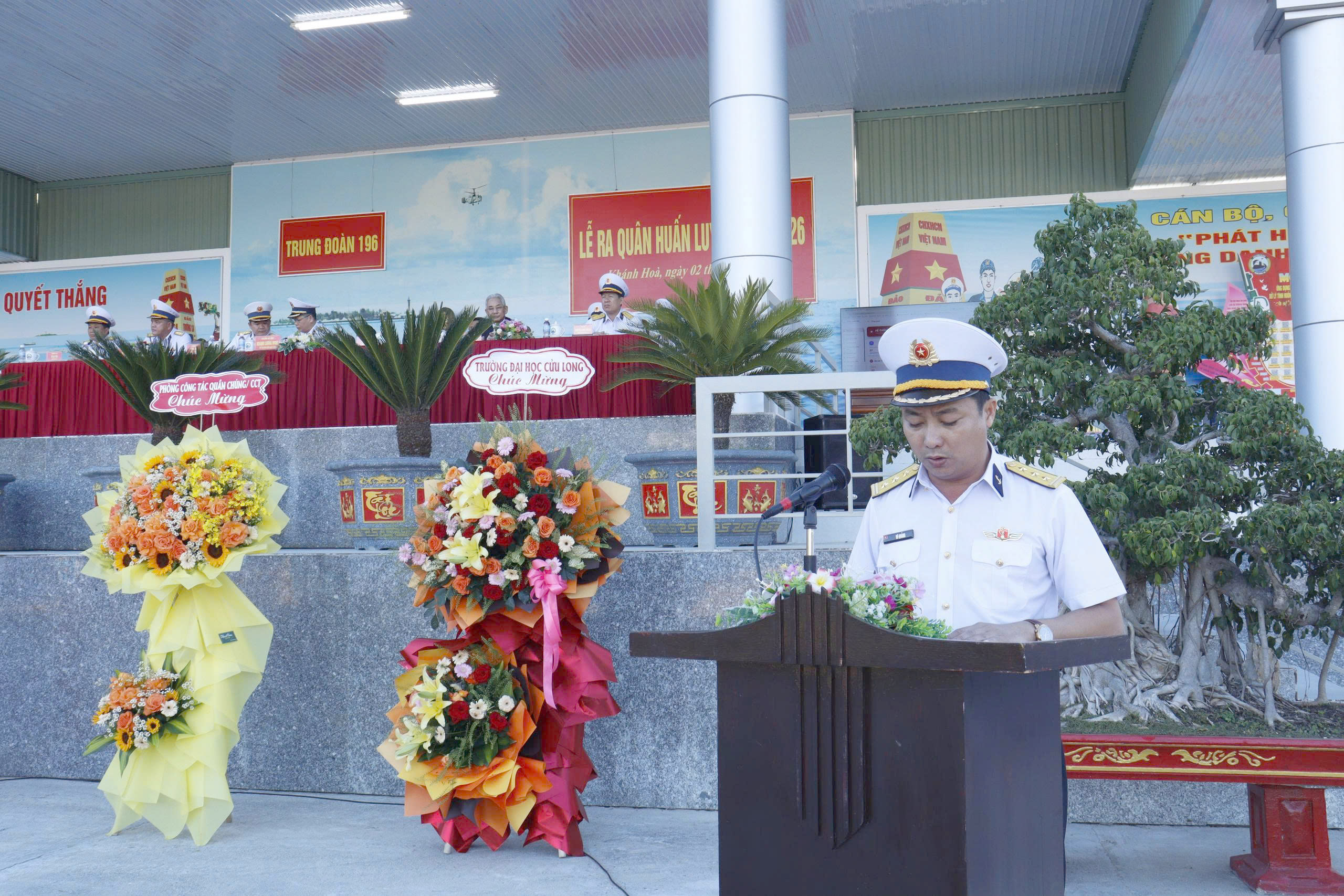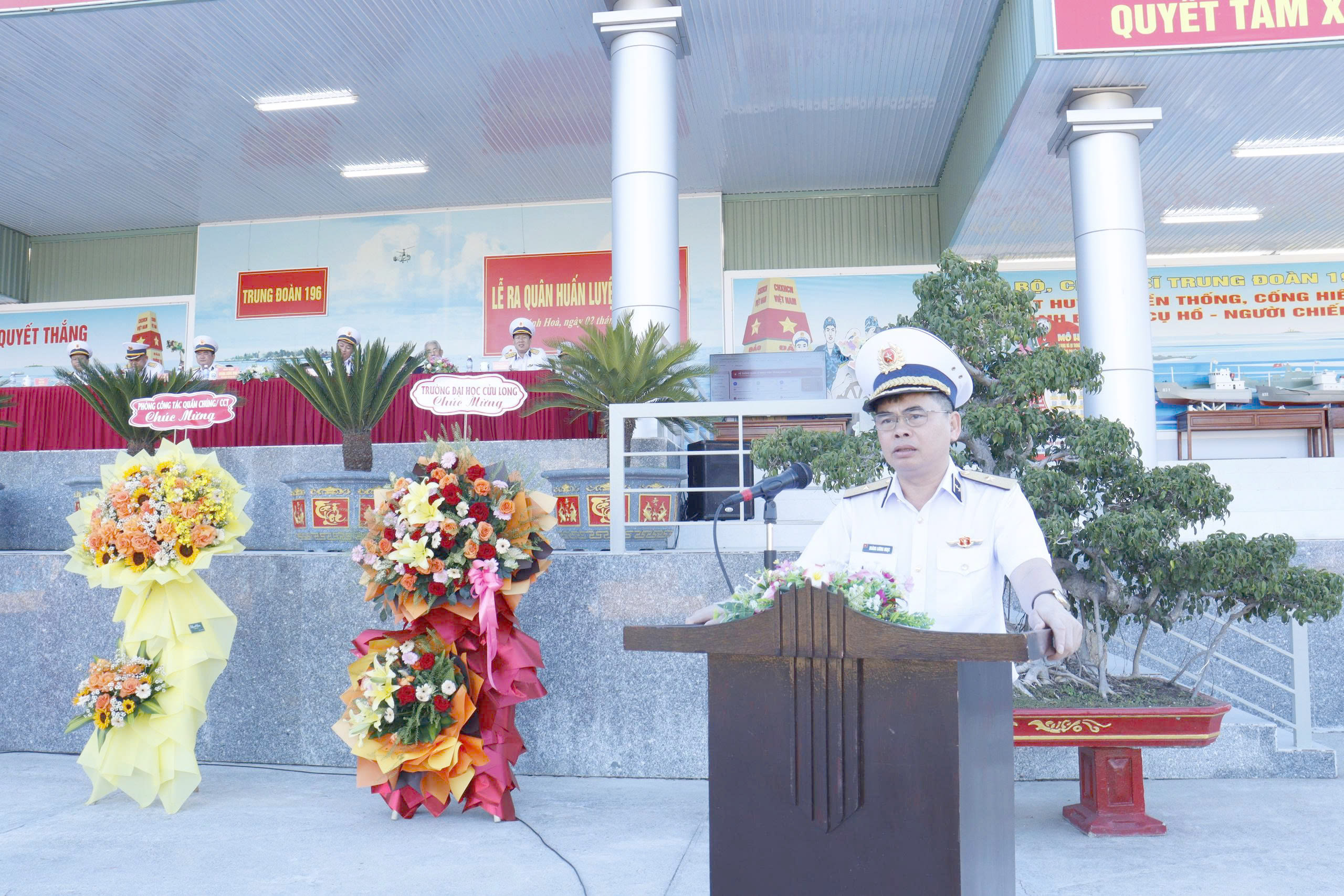 Phát biểu chỉ đạo tại buổi lễ, đồng chí Chuẩn Đô đốc Hoàng Lương Ngọc, Phó Tham mưu trưởng Hải quân biểu dương những kết quả nổi bật mà Trung đoàn đã đạt được trong năm qua, đồng thời yêu cầu đơn vị tiếp tục đổi mới nội dung, tổ chức và phương pháp huấn luyện theo phương châm “cơ bản, thiết thực, vững chắc, an toàn, tiết kiệm”; lấy thực hành làm chính, huấn luyện sát thực tế chiến đấu; chú trọng huấn luyện hiệp đồng, huấn luyện trong điều kiện phức tạp, nâng cao khả năng cơ động, sẵn sàng chiến đấu và xử trí hiệu quả mọi tình huống, không để bị động, bất ngờ.